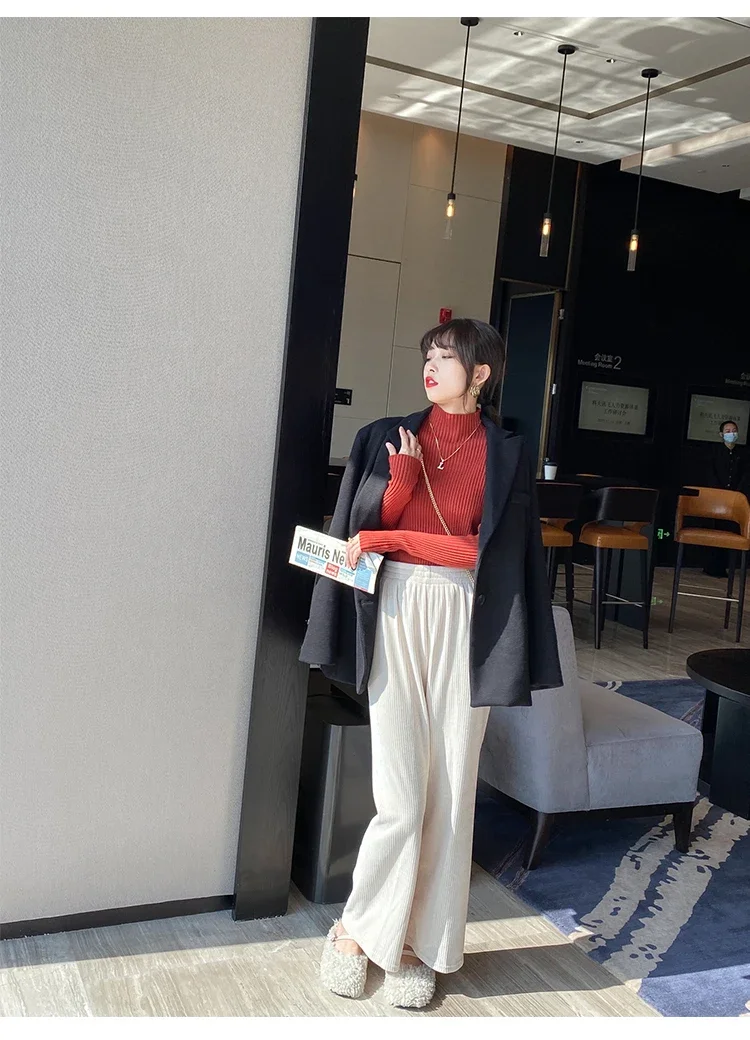 Top eleganti in maglia basic tinta unita maglione da donna con collo alto manica lunga pullover casual sottile moda coreana abiti semplici chic