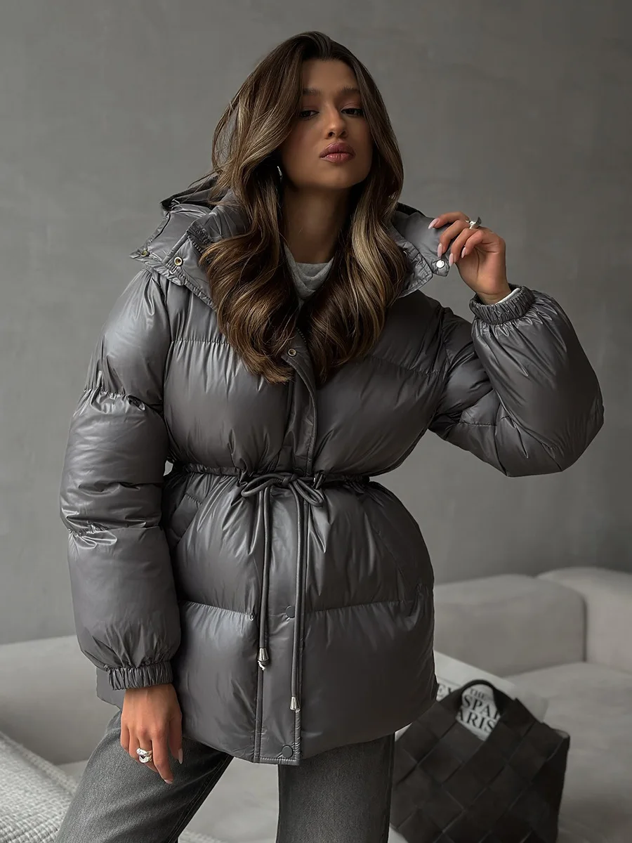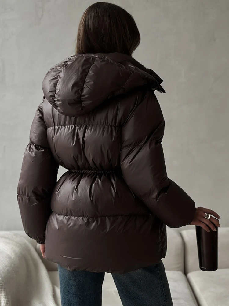 Tossy Leisure Cappotto Parker corto con cappuccio da donna con coulisse in vita caldo solido tasca con cerniera invernale maniche lunghe 2025 Cappotto Parker