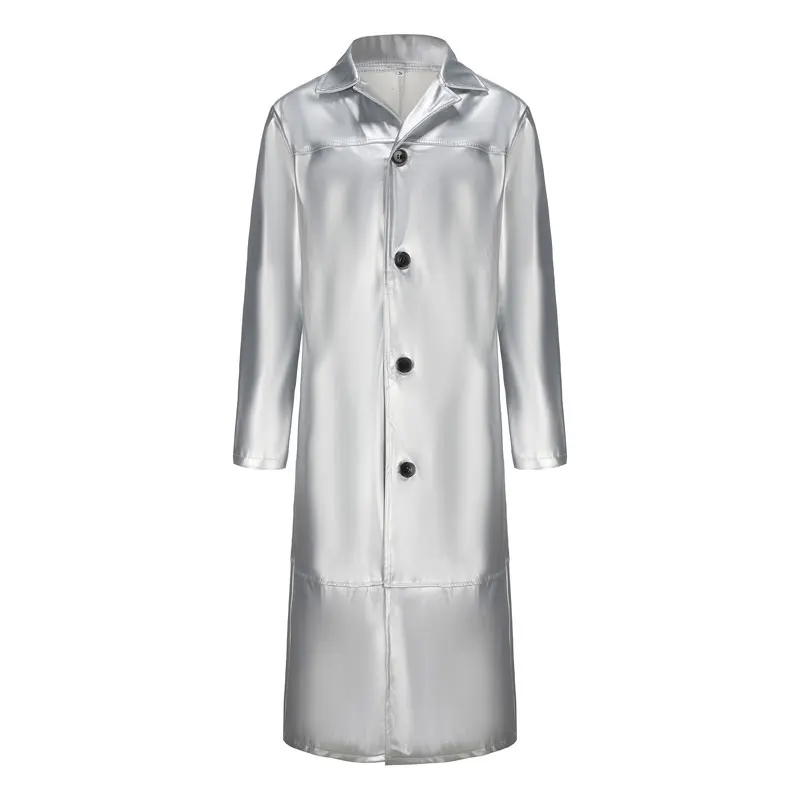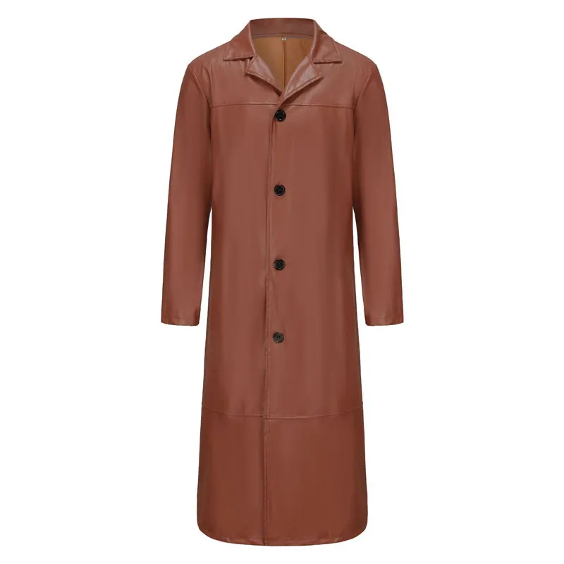 Trench da uomo in ecopelle streetwear Cappotto lungo giacca a vento moda Slim Fit Giacca antivento in PU Steampunk Outwear oversize
