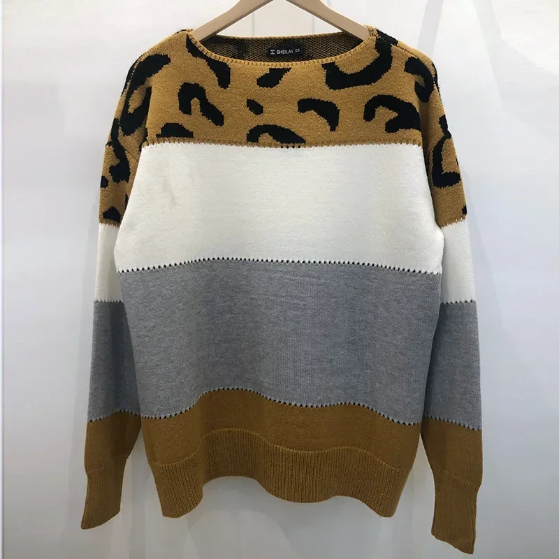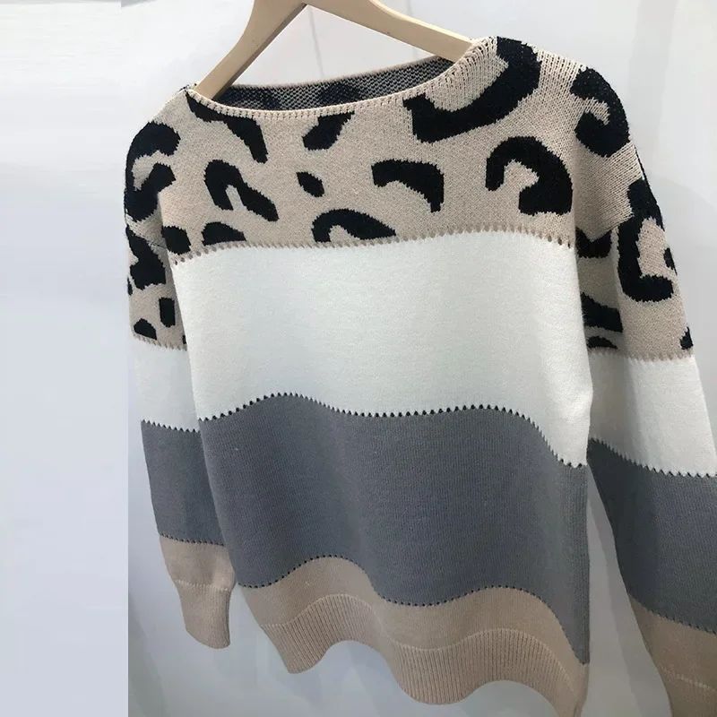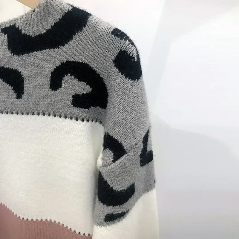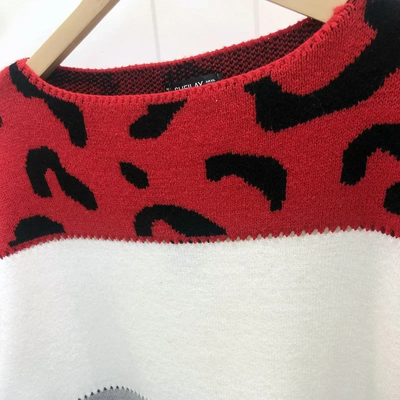 Tuoyi Maglione Abito da donna Leopardo Autunno Dzianiny Impiombato Felpa a maniche lunghe Maglione oversize 2024 Nuovi vestiti Y2k