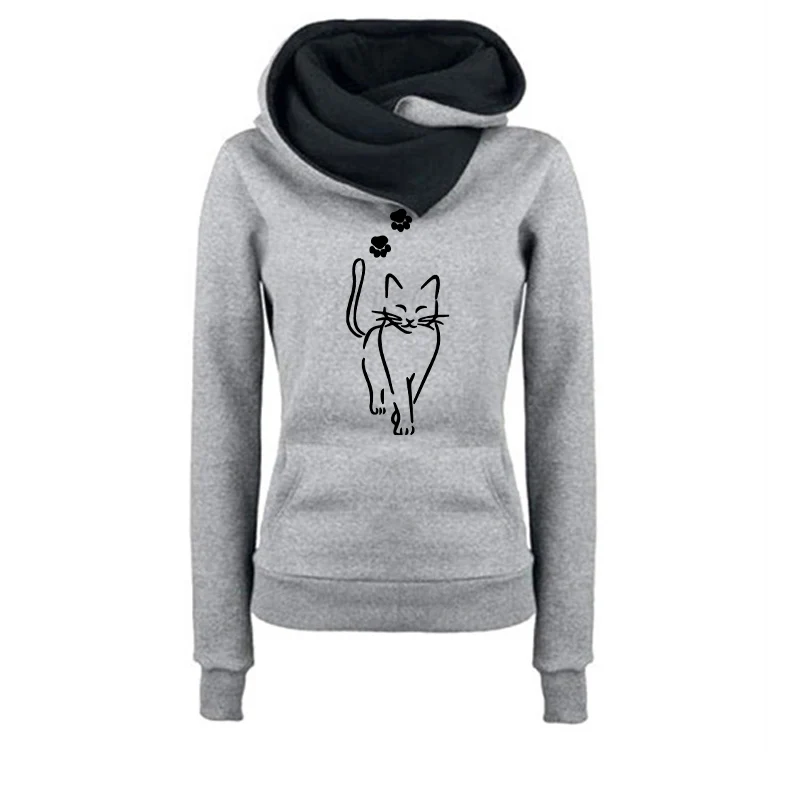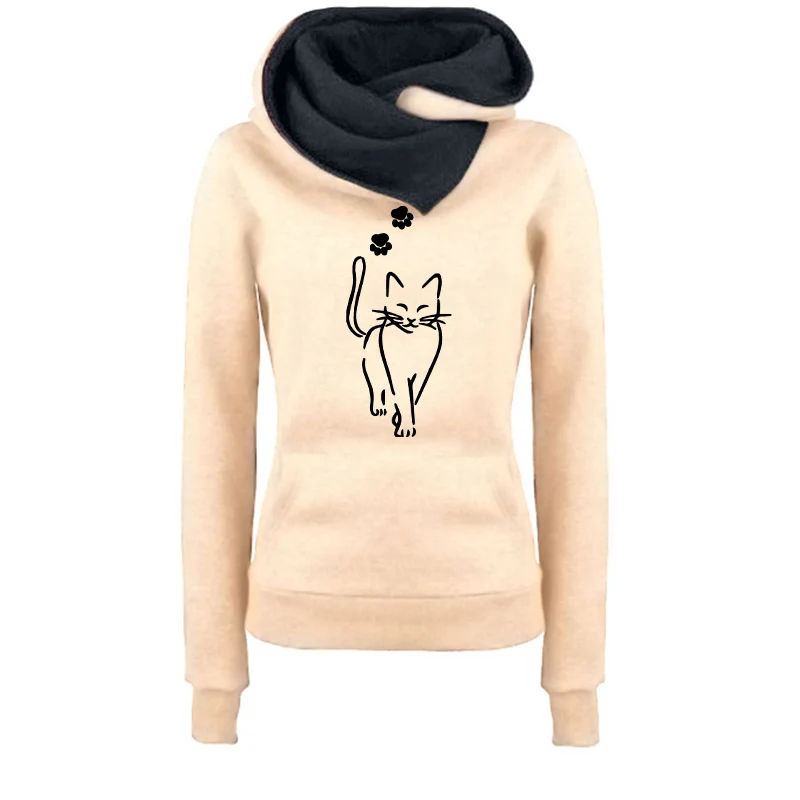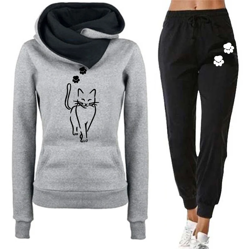 Tuta da donna elegante con stampa gatto Felpe con cappuccio versatili quotidiane Felpe o pantaloni da jogging Casual 2025 Abbigliamento caldo autunno inverno