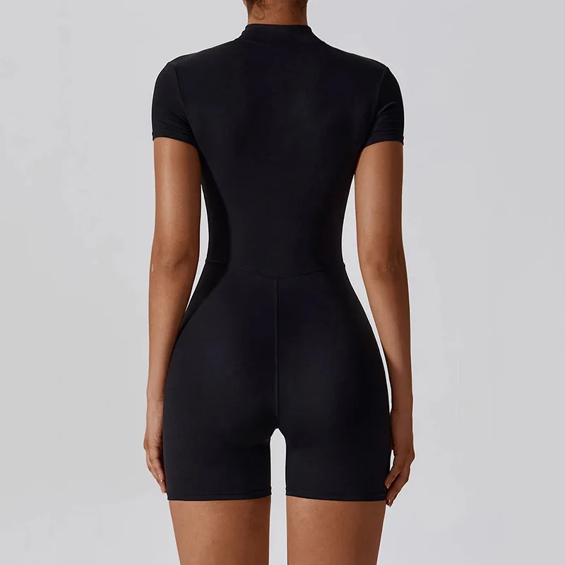 Tuta da yoga a maniche corte con cerniera da donna – Tutina fitness attillata traspirante ad asciugatura rapida per abbigliamento sportivo da corsa in palestra