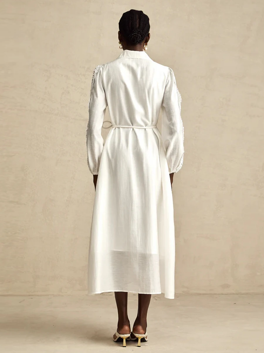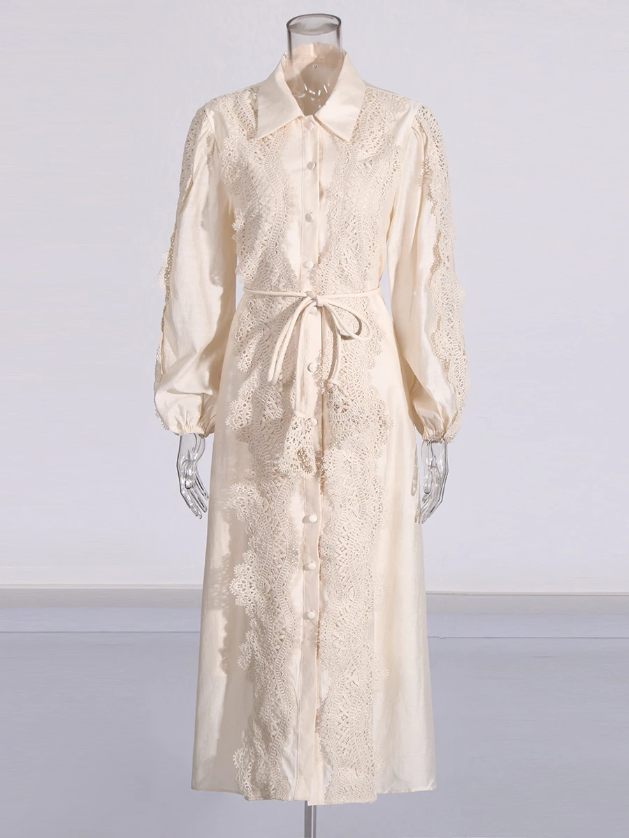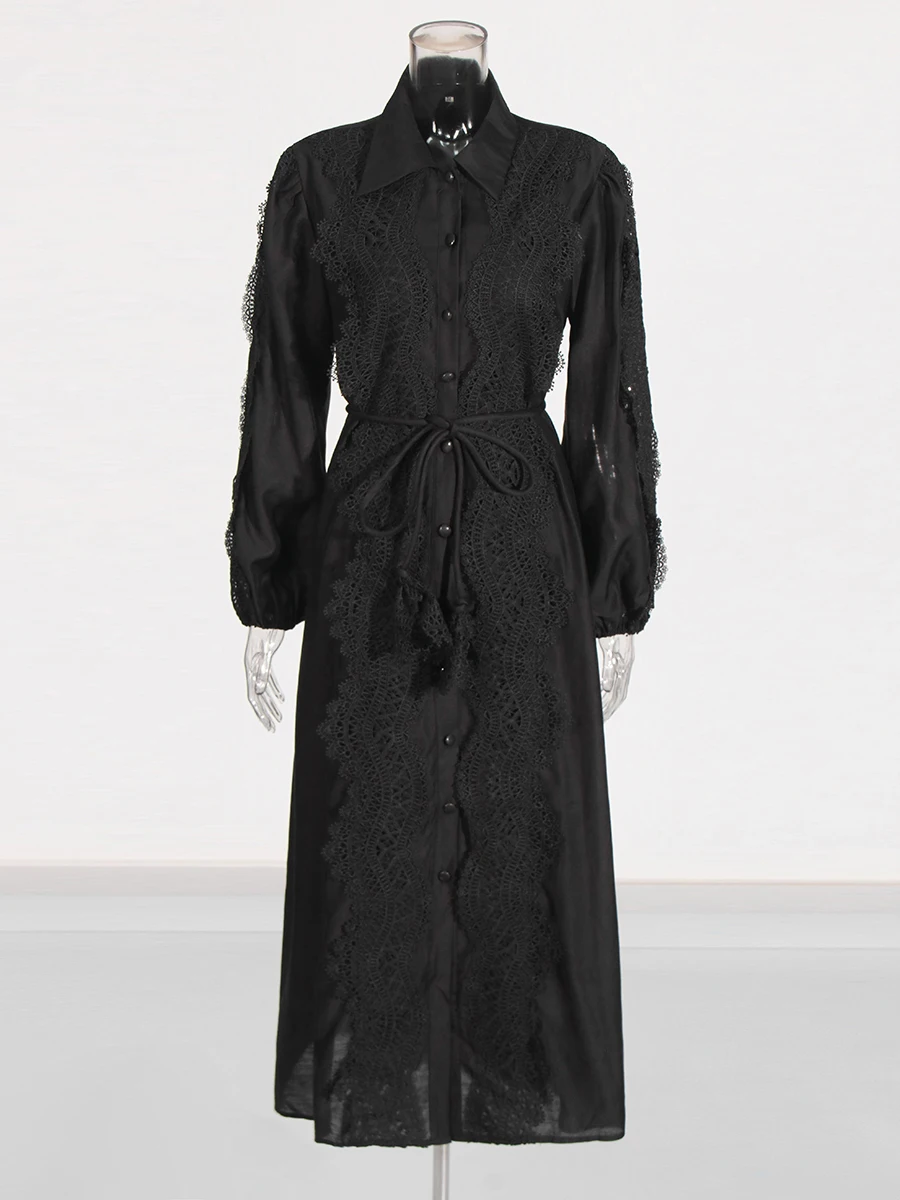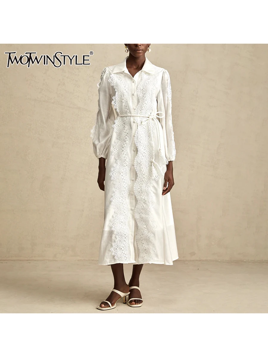 Recensisci per primo “TWOTWINSTYLE Abito elegante ricamato per donna Risvolto Manica a lanterna Vita alta Patchwork Monopetto Abiti eleganti Donna” Annulla risposta