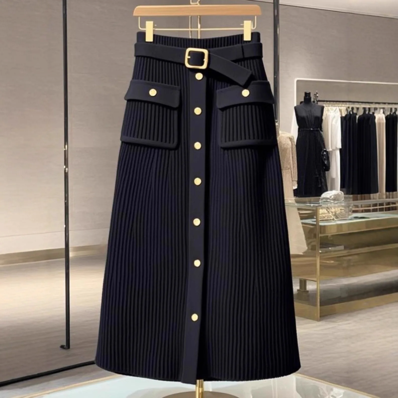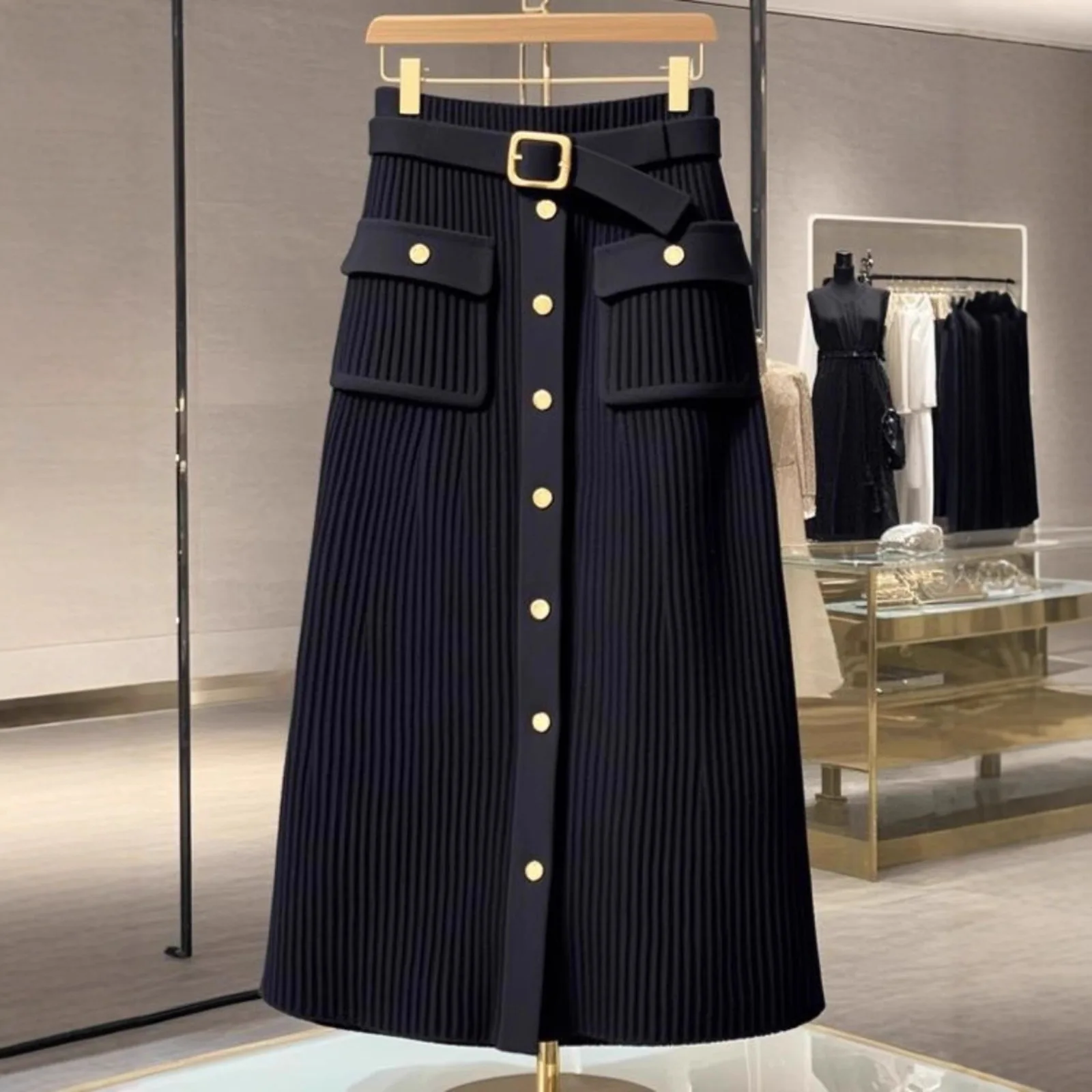 Unico ed elegante nero a vita alta a-line mini abito lavorato a maglia gonna lunga alla moda elegante autunno inverno sensazione di fascia alta
