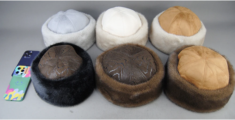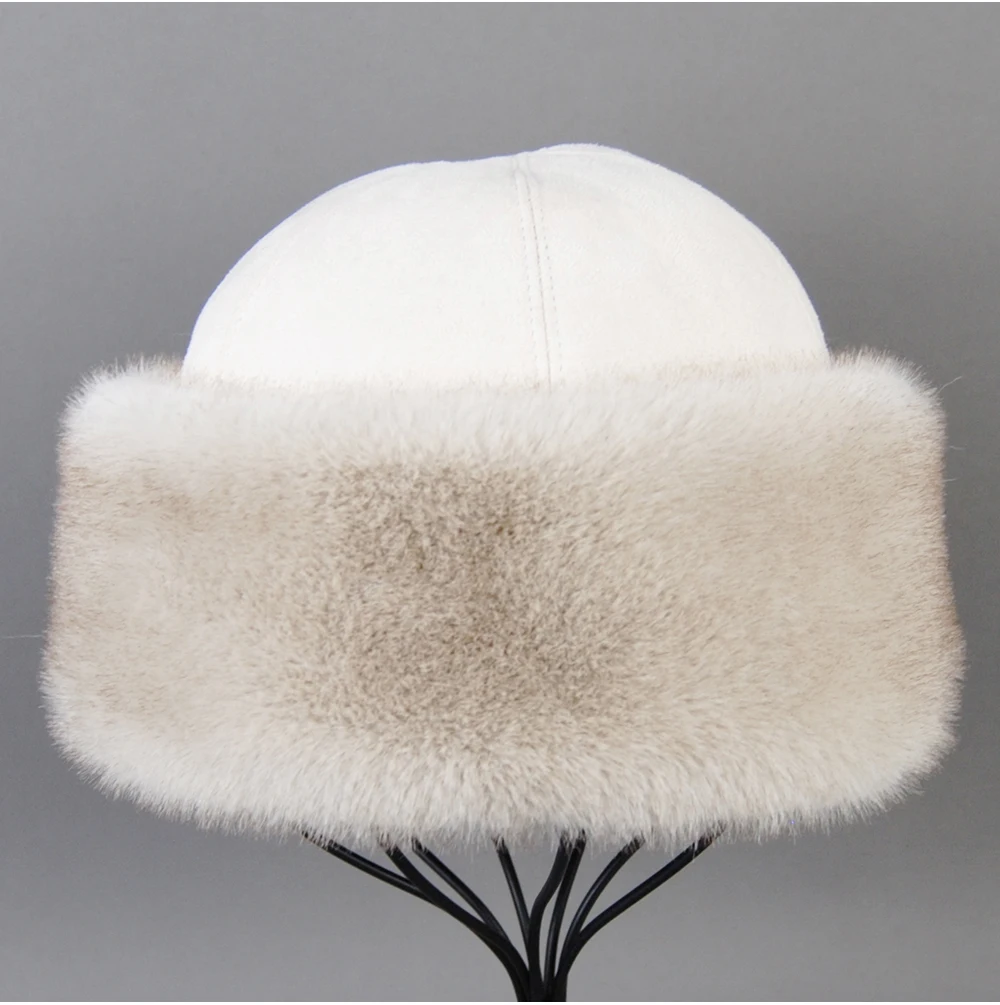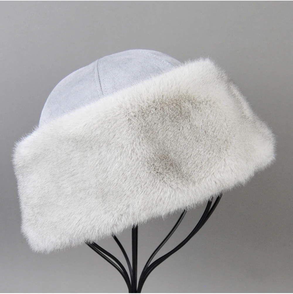 Vendita calda cappello di pelliccia di visone finto berretto da baseball genuino invernale Russia moda elegante signora calda cappello di paglia con palla di pelliccia sintetica