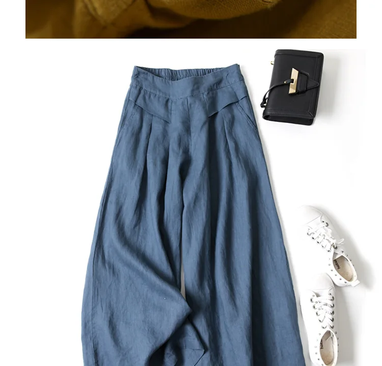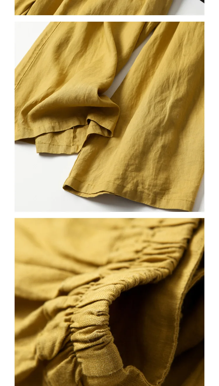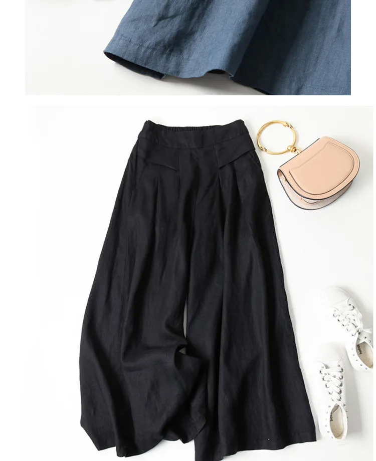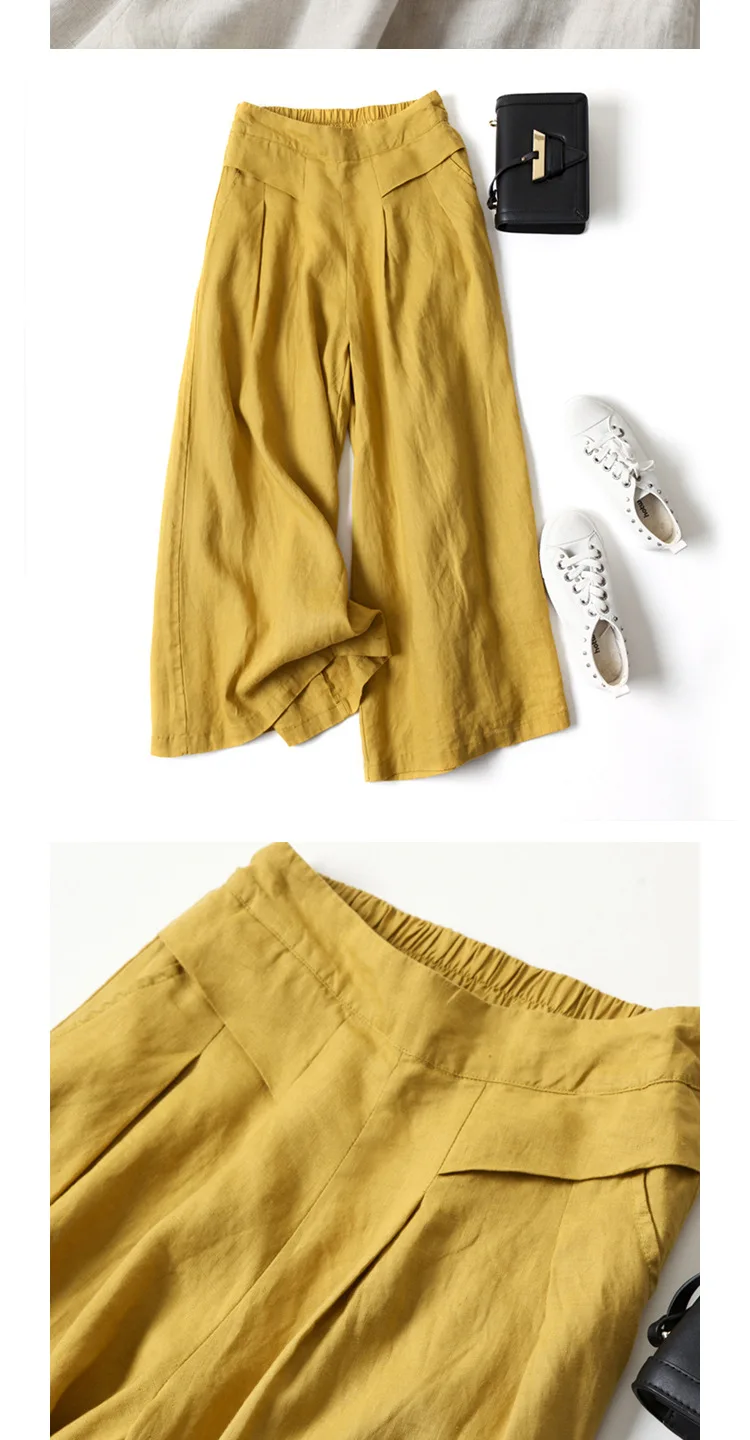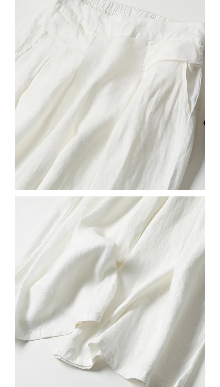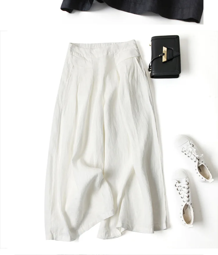 1 recensione per Vendita calda donna lino gamba larga pantaloni corti gonna ampia fascia elastica sottile vita dimagrante pantaloni estivi al polpaccio oversize