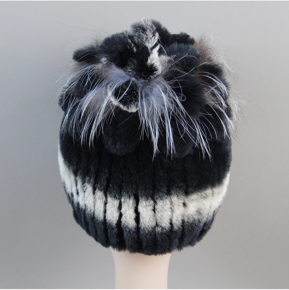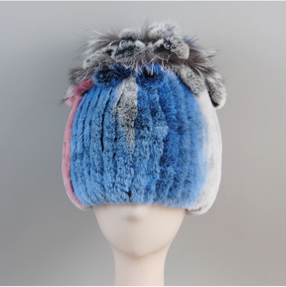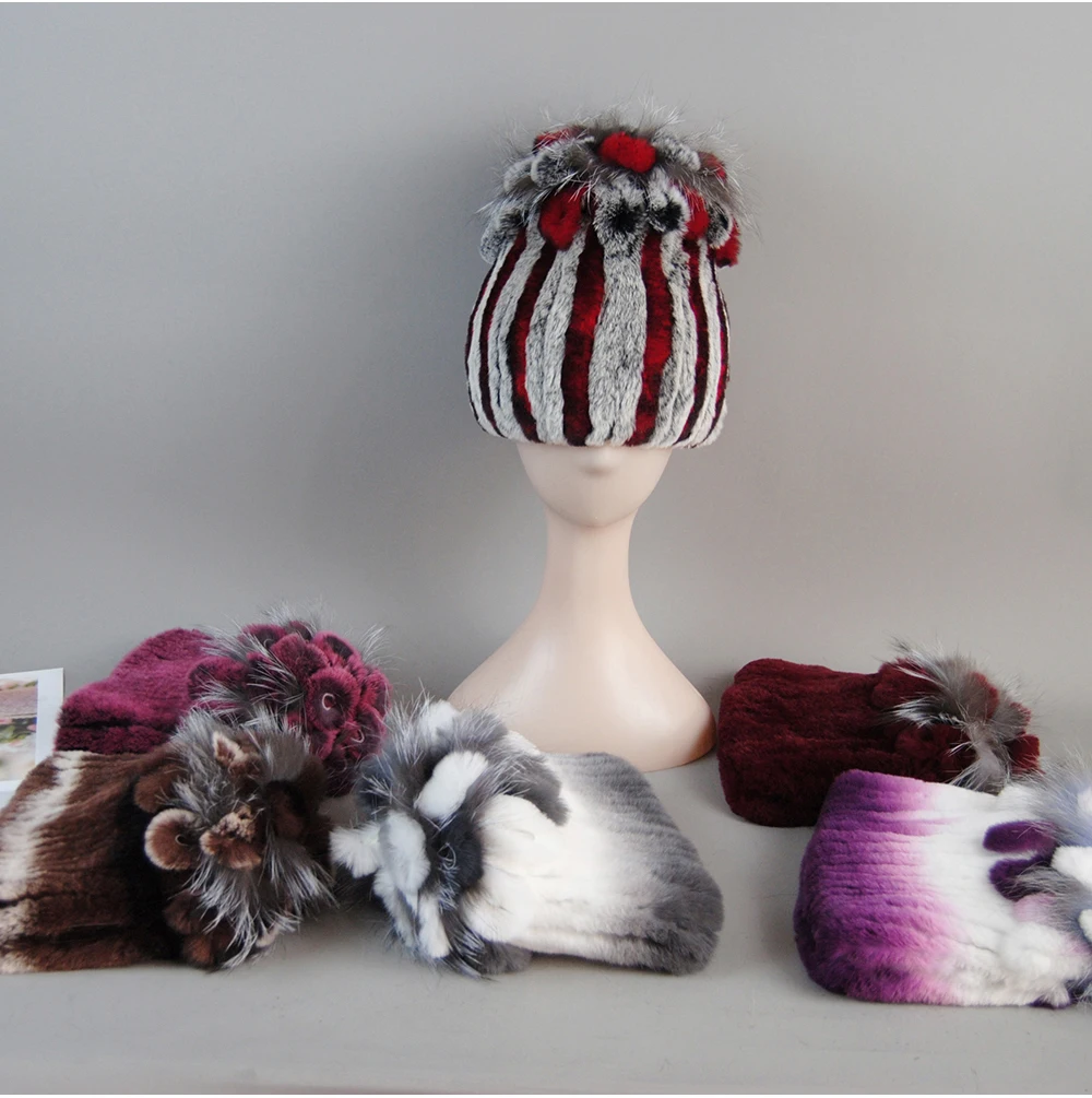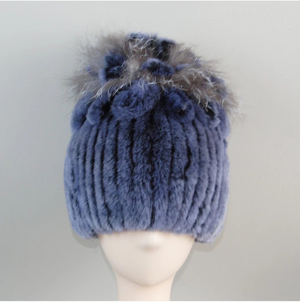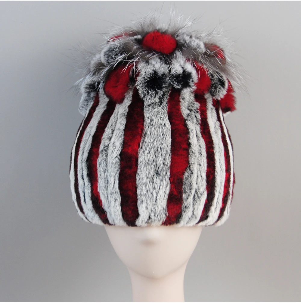 Vendita calda Russia Nuovo Inverno Berretti di Pelliccia Reale Cappello Delle Donne 100% Genuino Reale Rex Cappello di Coniglio Buona Elastico Lavorato A Maglia Rex Berretti di Pelliccia di Coniglio
