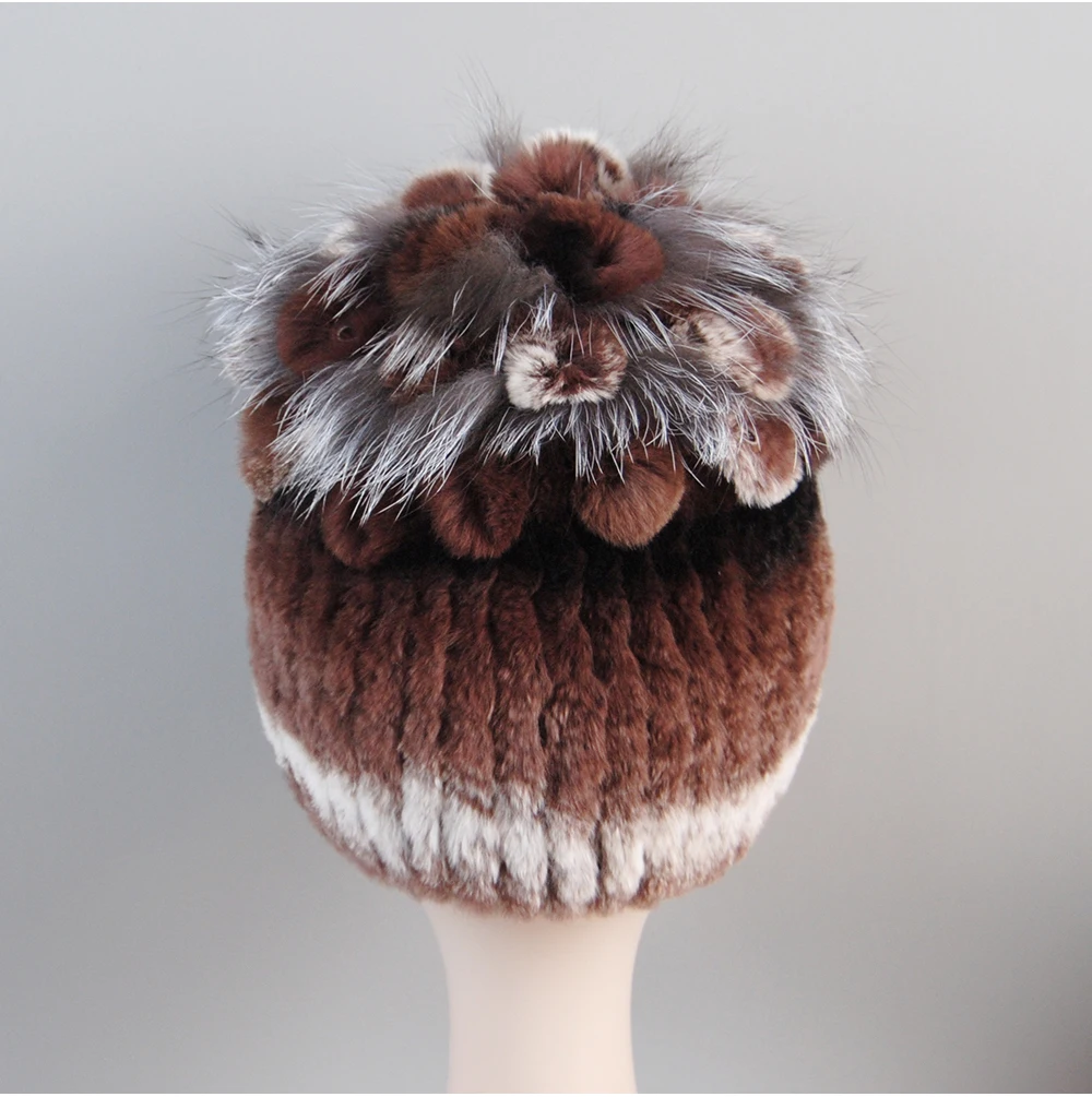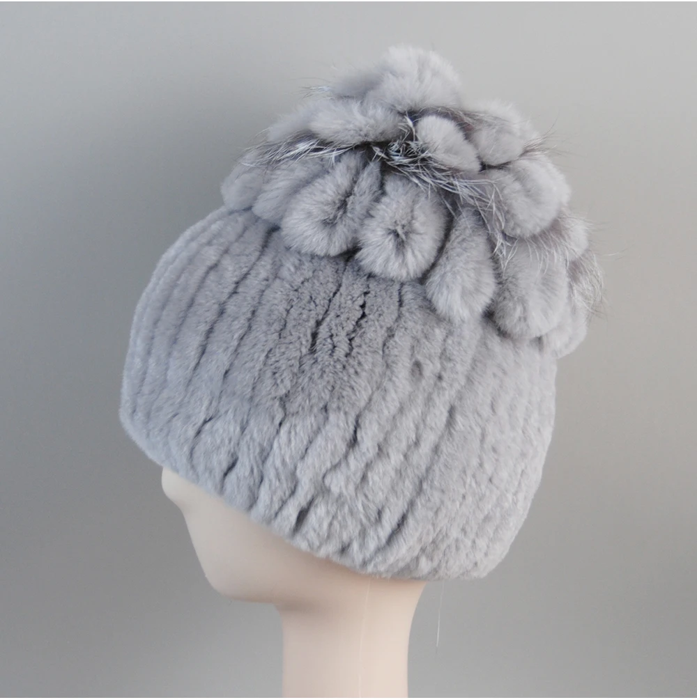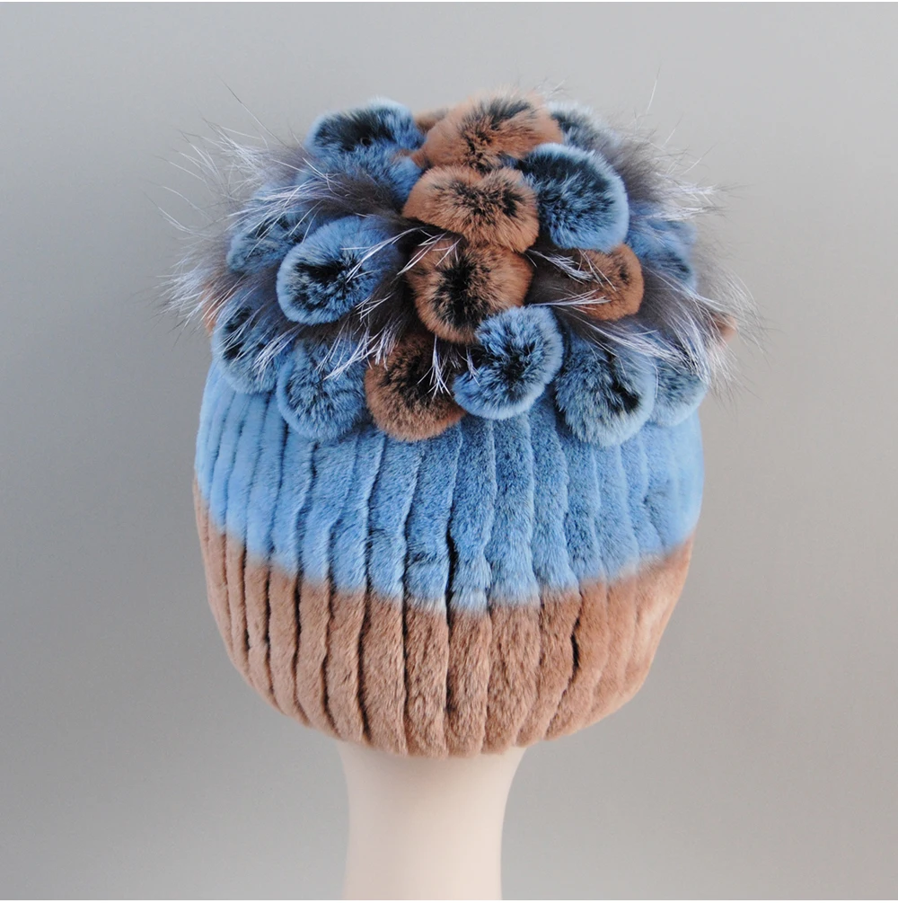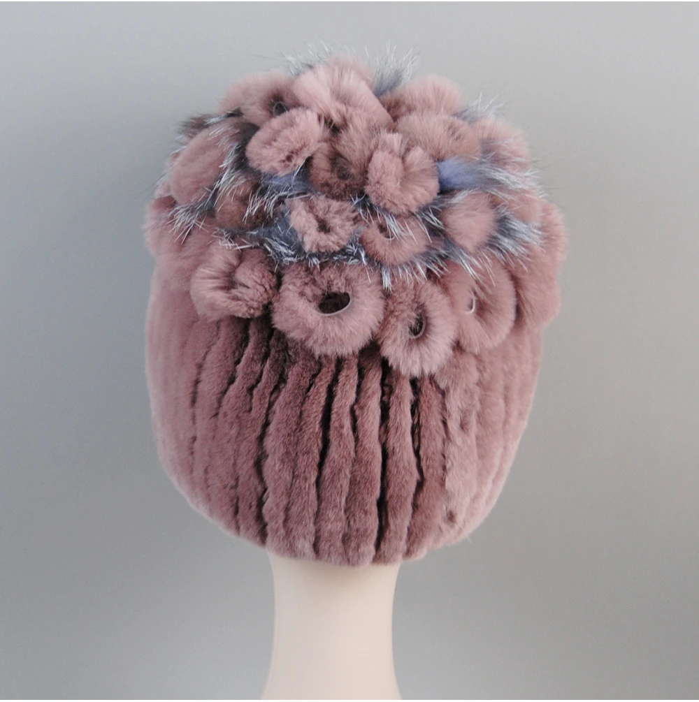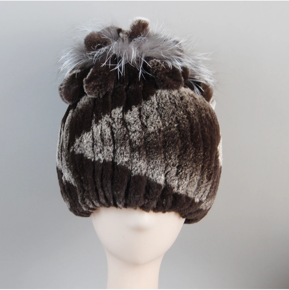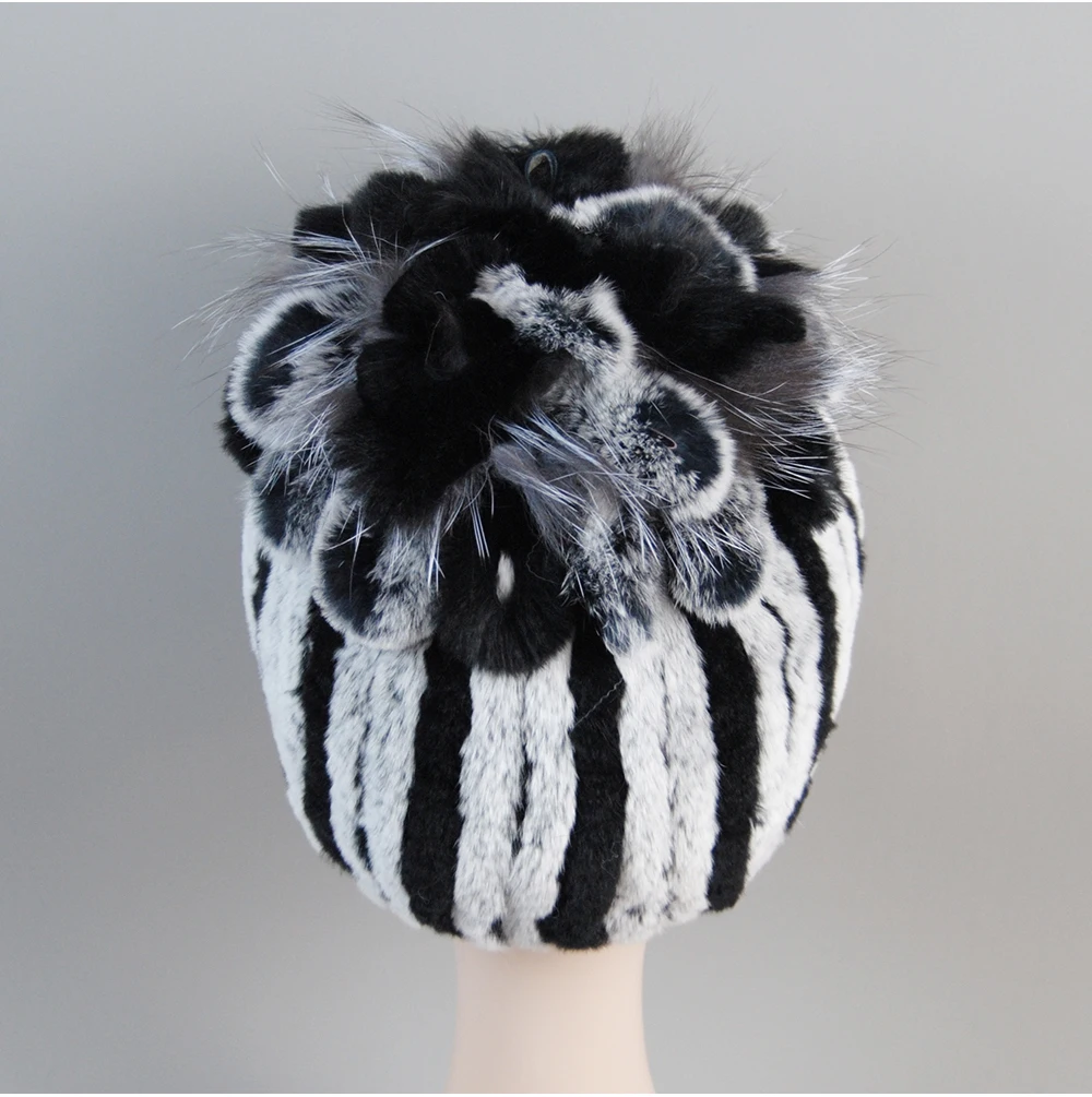 Vendita calda Russia Nuovo Inverno Berretti di Pelliccia Reale Cappello Delle Donne 100% Genuino Reale Rex Cappello di Coniglio Buona Elastico Lavorato A Maglia Rex Berretti di Pelliccia di Coniglio
