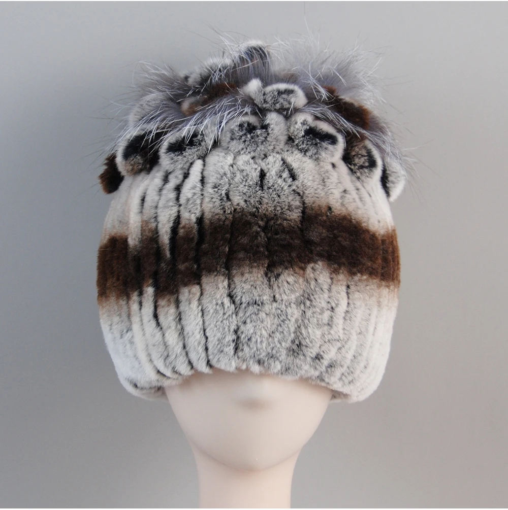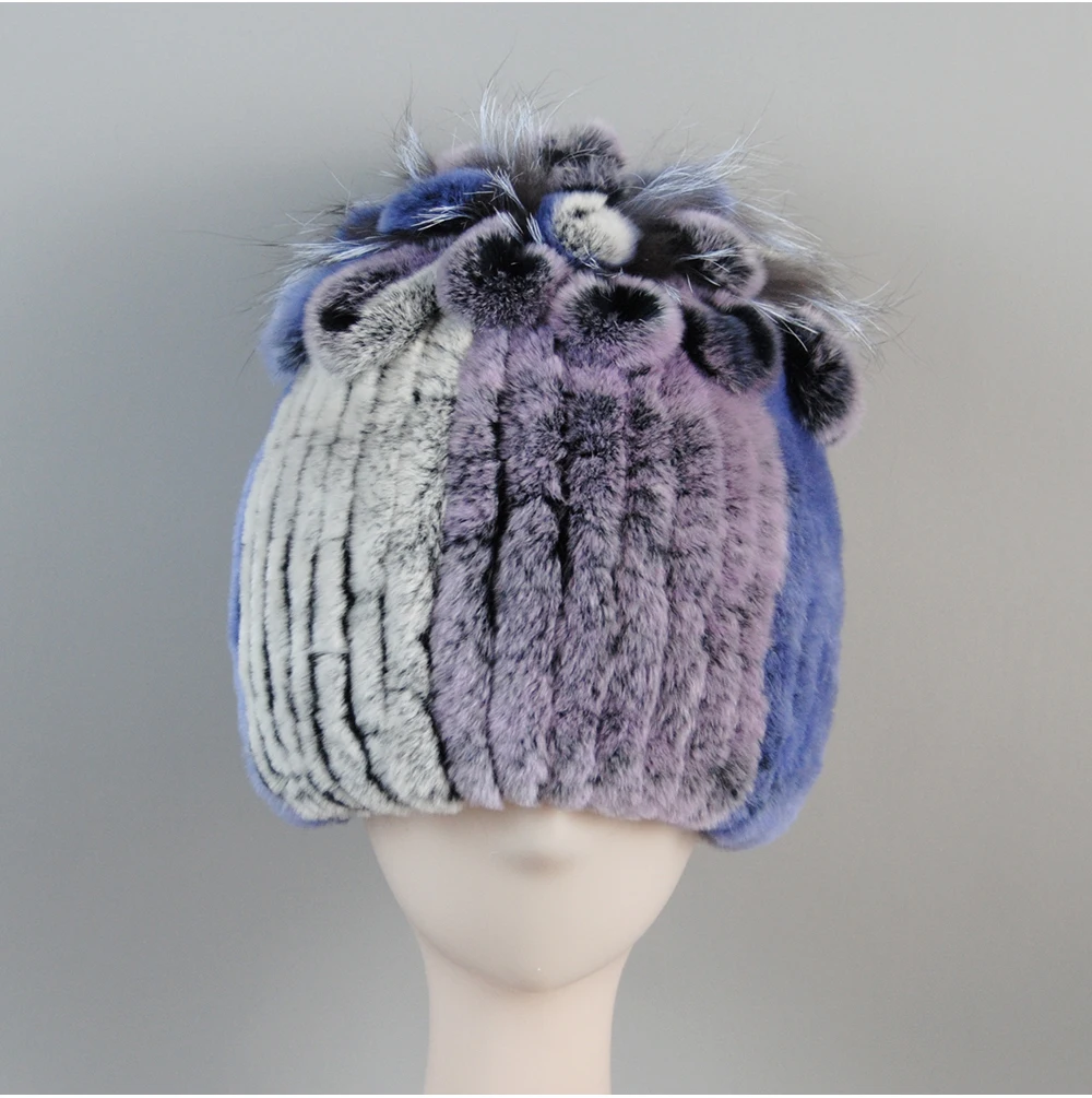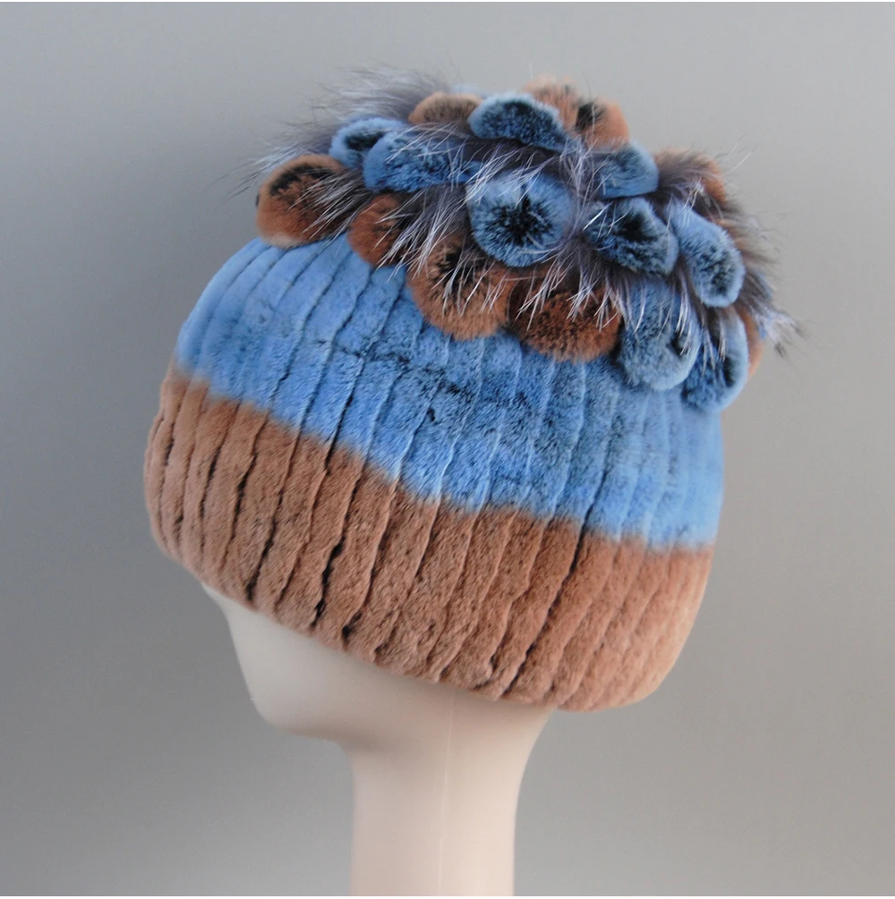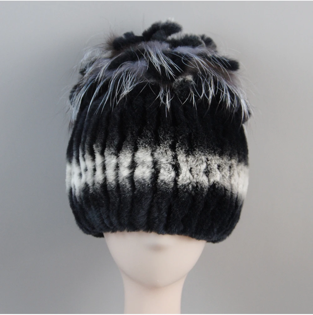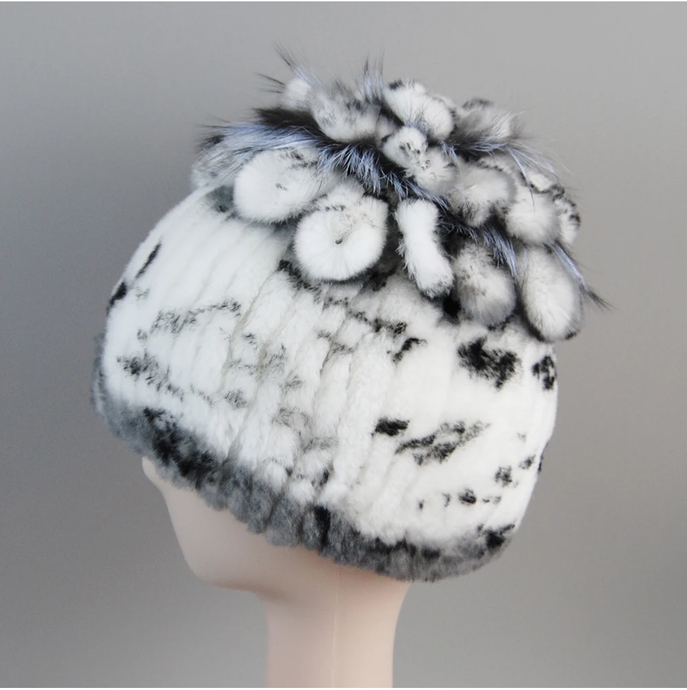 Vendita calda Russia Nuovo Inverno Berretti di Pelliccia Reale Cappello Delle Donne 100% Genuino Reale Rex Cappello di Coniglio Buona Elastico Lavorato A Maglia Rex Berretti di Pelliccia di Coniglio
