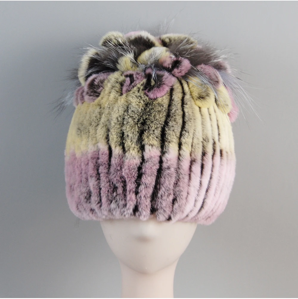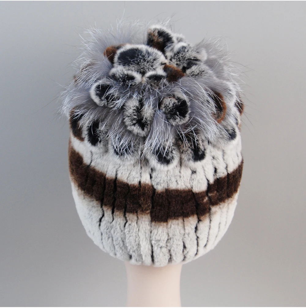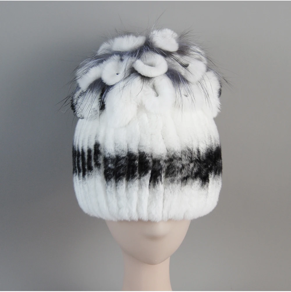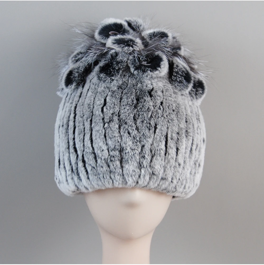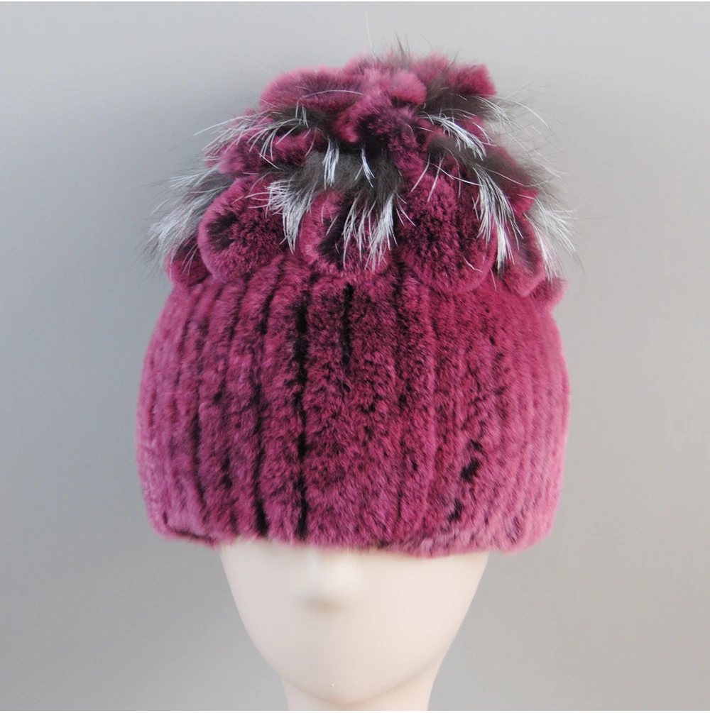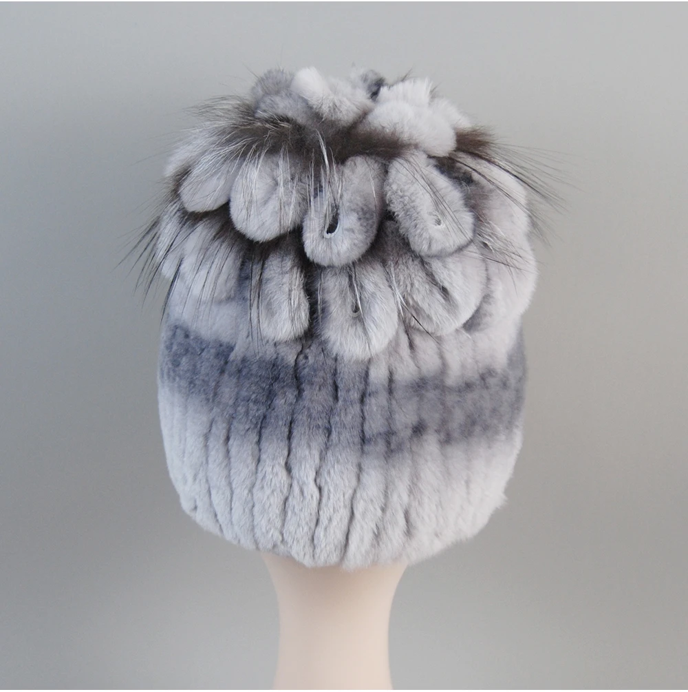 Vendita calda Russia Nuovo Inverno Berretti di Pelliccia Reale Cappello Delle Donne 100% Genuino Reale Rex Cappello di Coniglio Buona Elastico Lavorato A Maglia Rex Berretti di Pelliccia di Coniglio