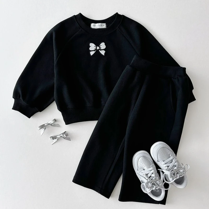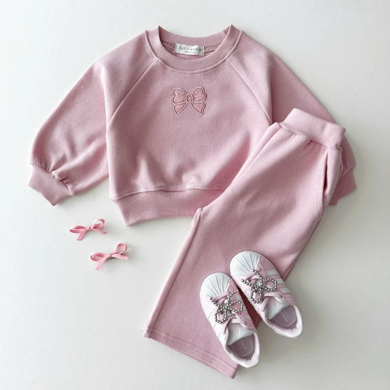 Vestiti della neonata Set Autunno Kid Cute Bow Felpe Pullover Sweet Top e Pantaloni 2 pezzi Vestito Bambini Moda Tute Abiti