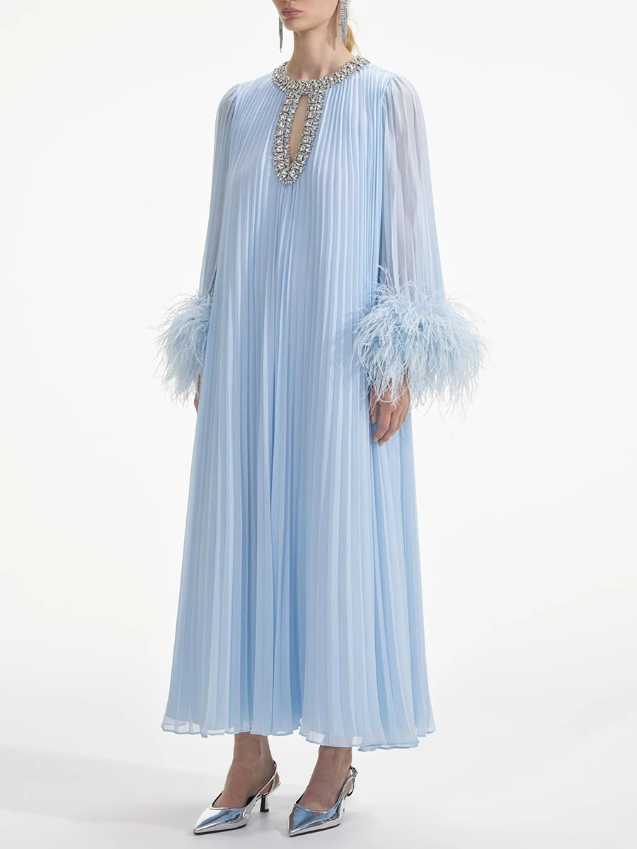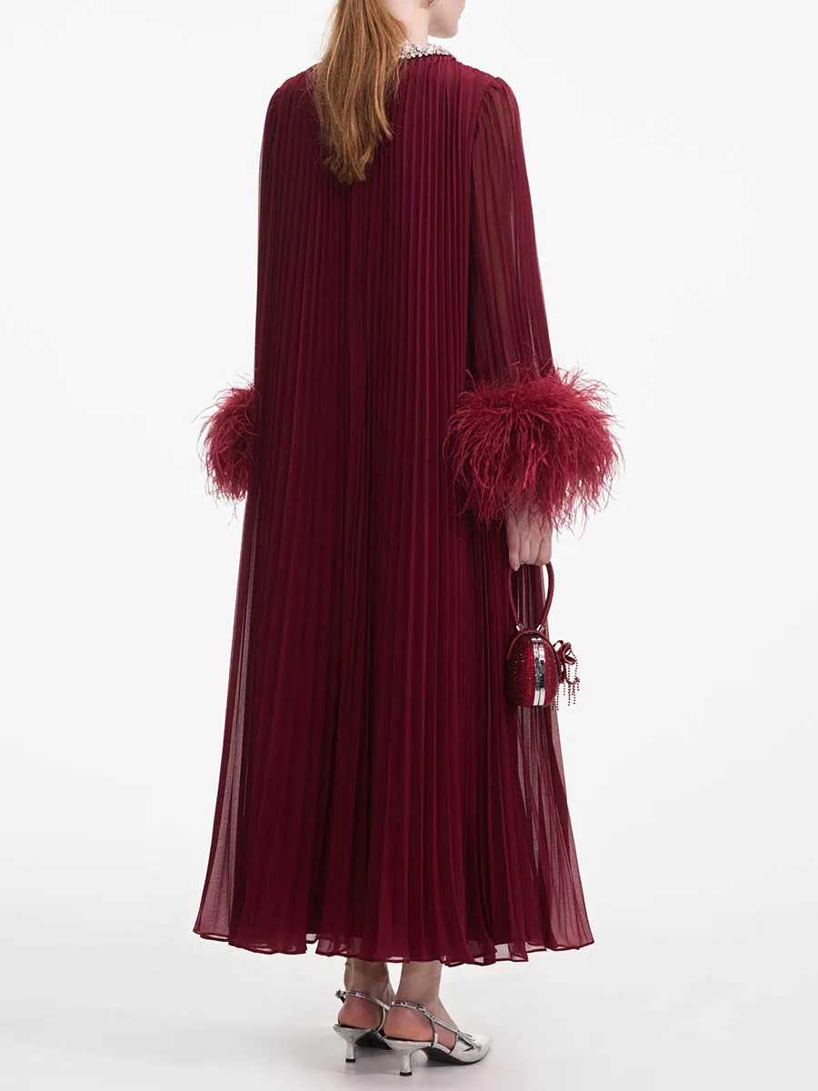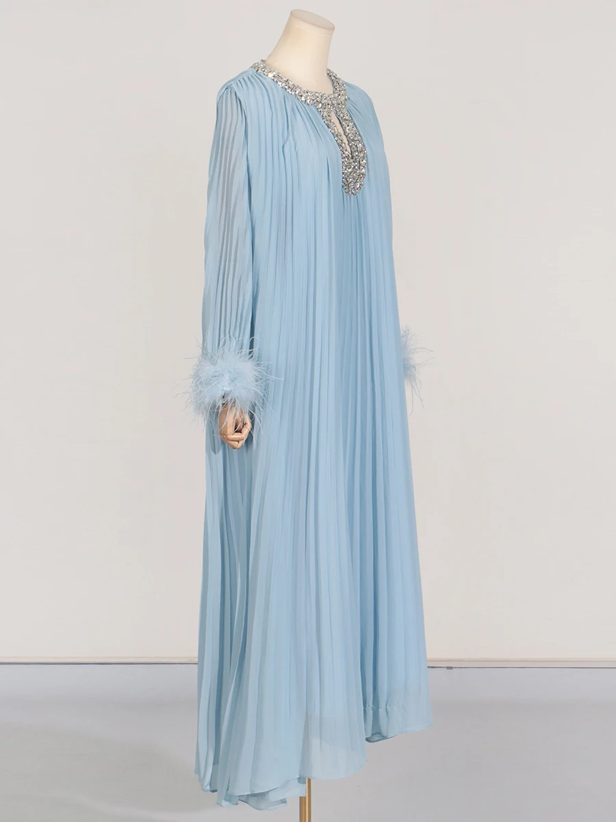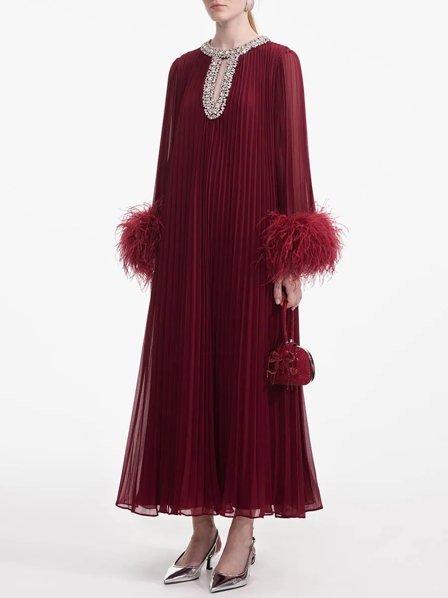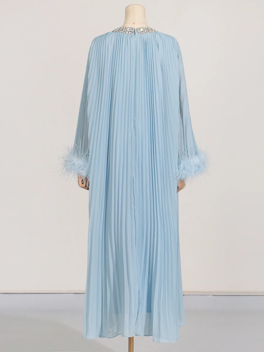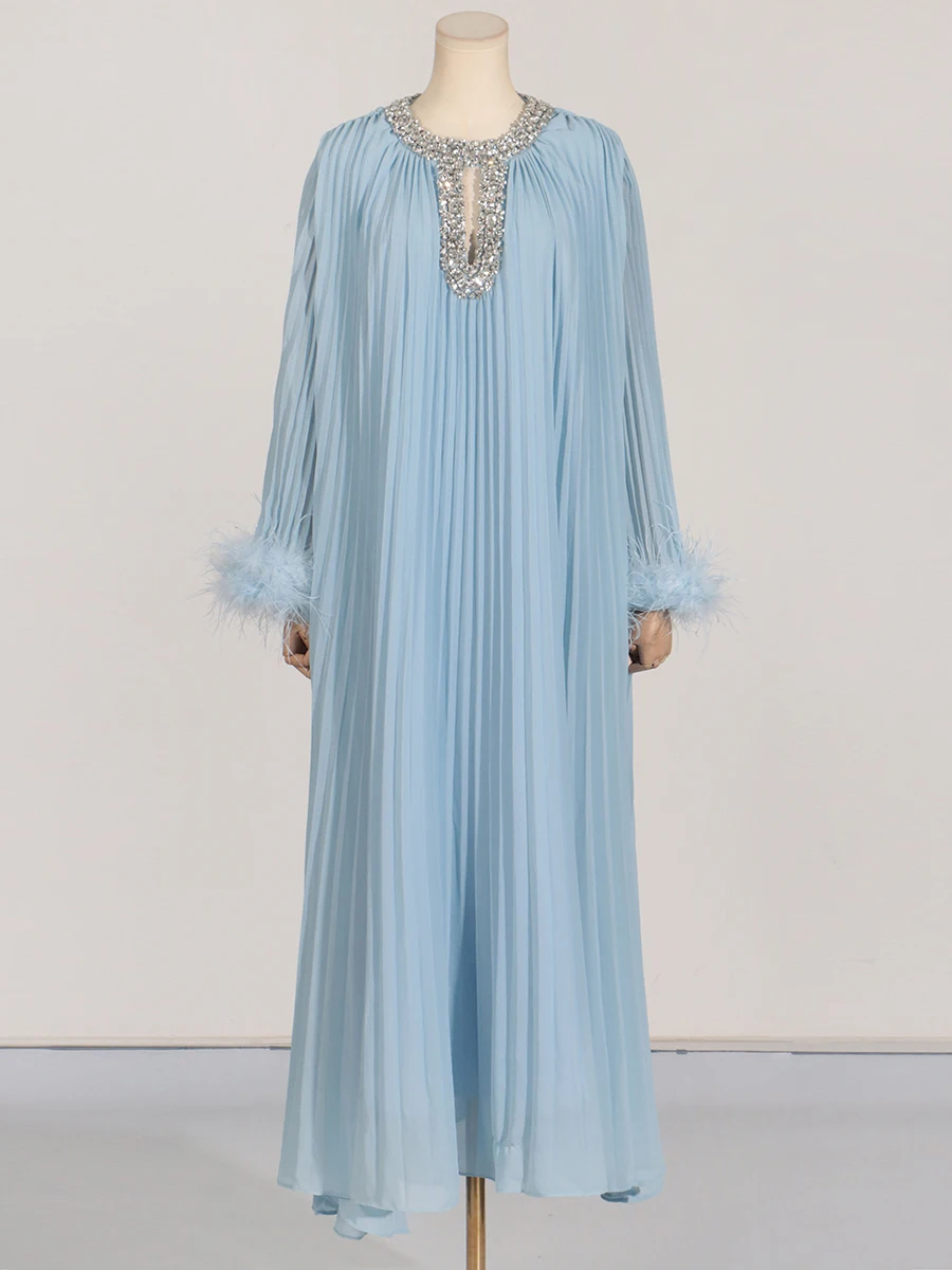 VGH Minimalista Diamanti Impiombati Abiti A Pieghe Allentati Per Le Donne O Collo Manica Lunga Patchwork Piume Scava Fuori Il Vestito Femminile