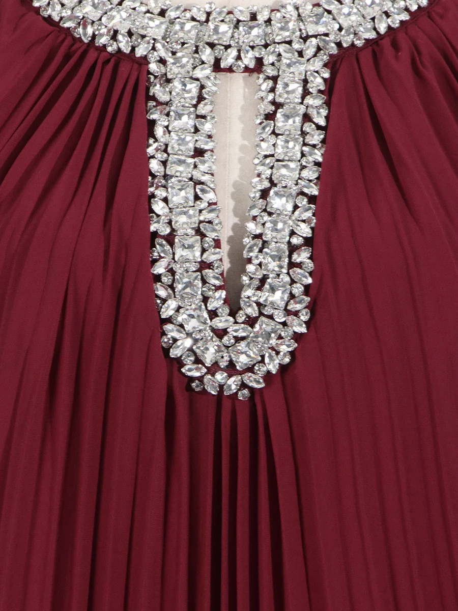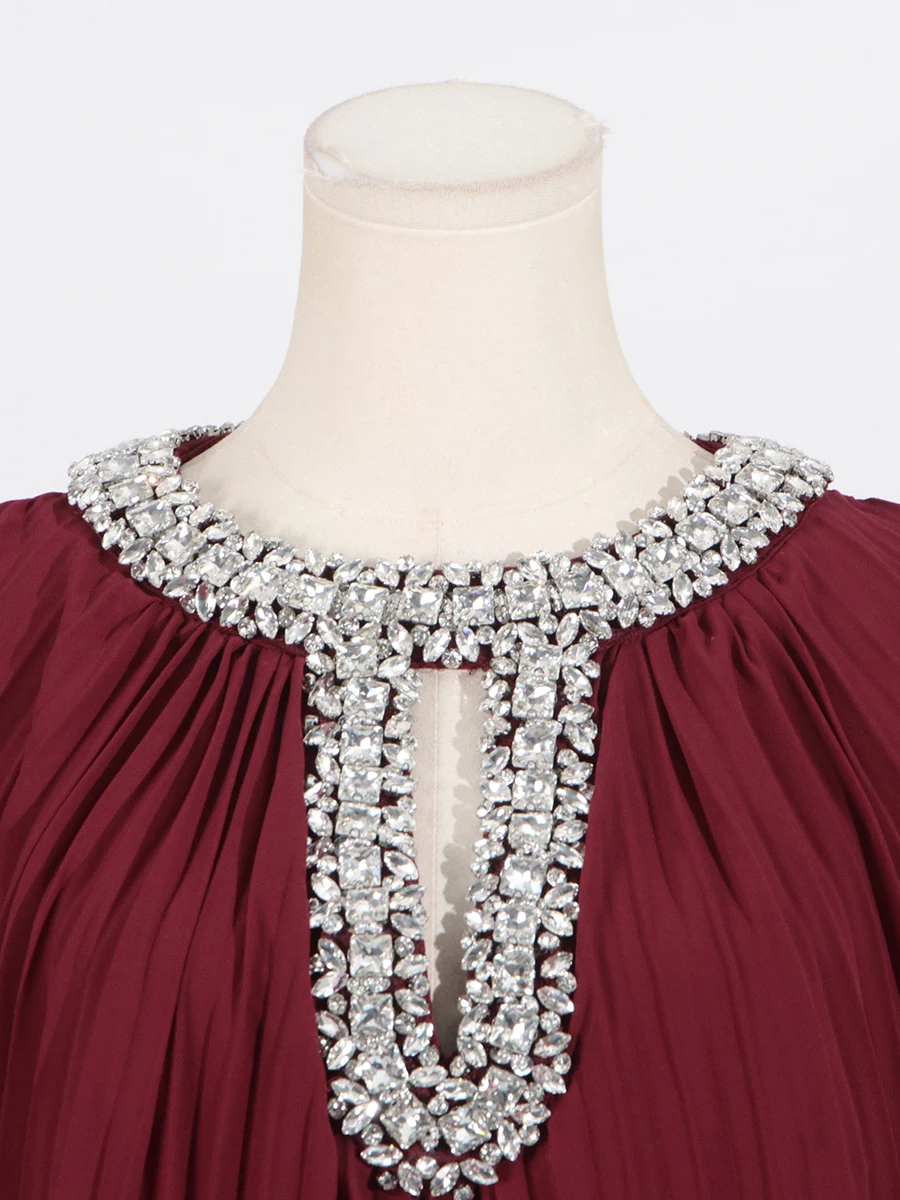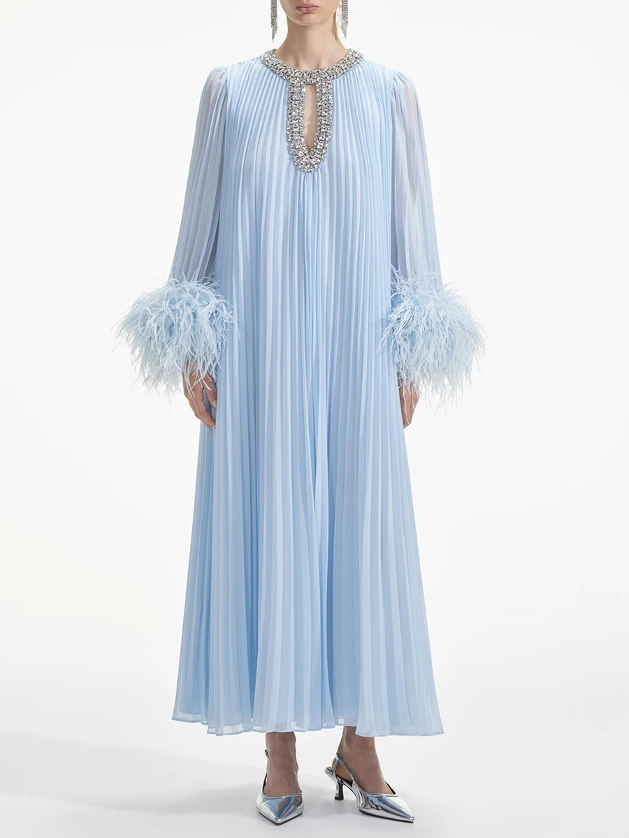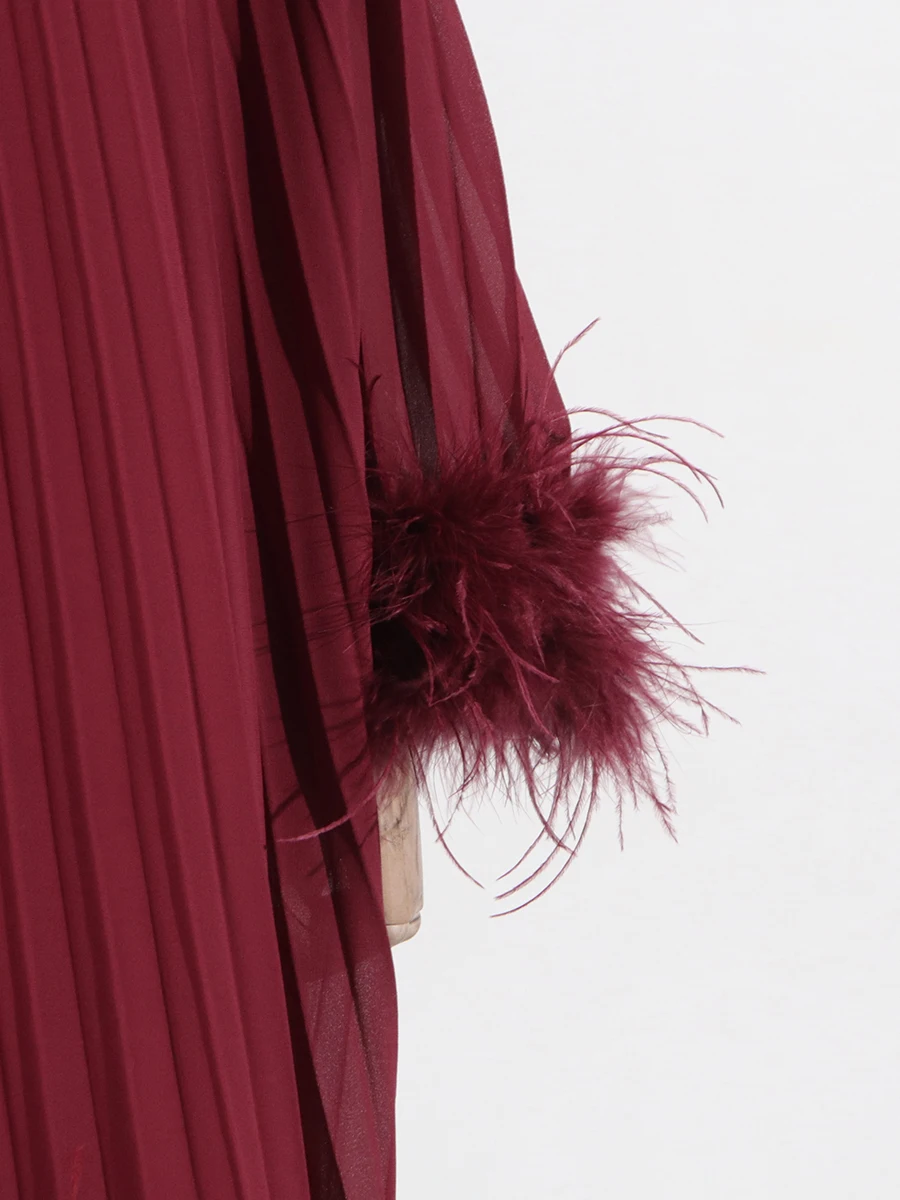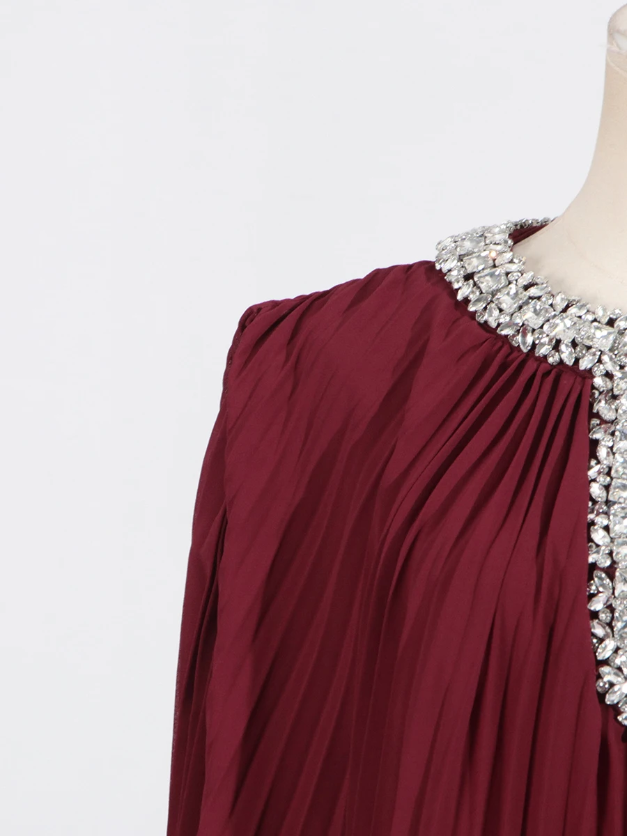 VGH Minimalista Diamanti Impiombati Abiti A Pieghe Allentati Per Le Donne O Collo Manica Lunga Patchwork Piume Scava Fuori Il Vestito Femminile