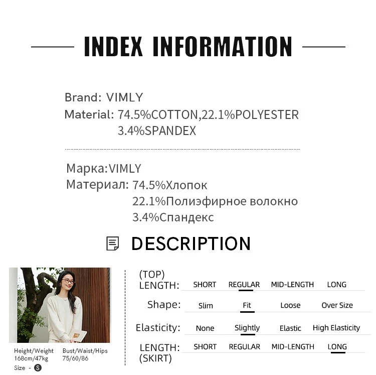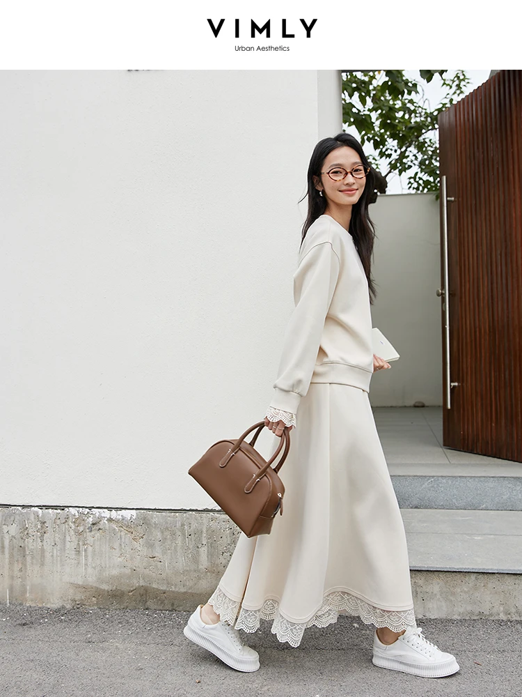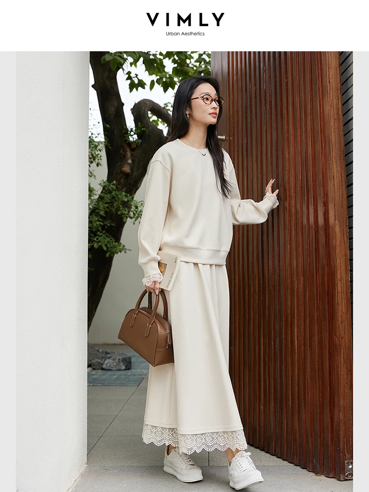 VIMLY Felpa da donna Gonna Set Due pezzi Donna Abiti 2025 Gonna casual Vestito Lady 2025 Primavera Autunno Abiti femminili A0698