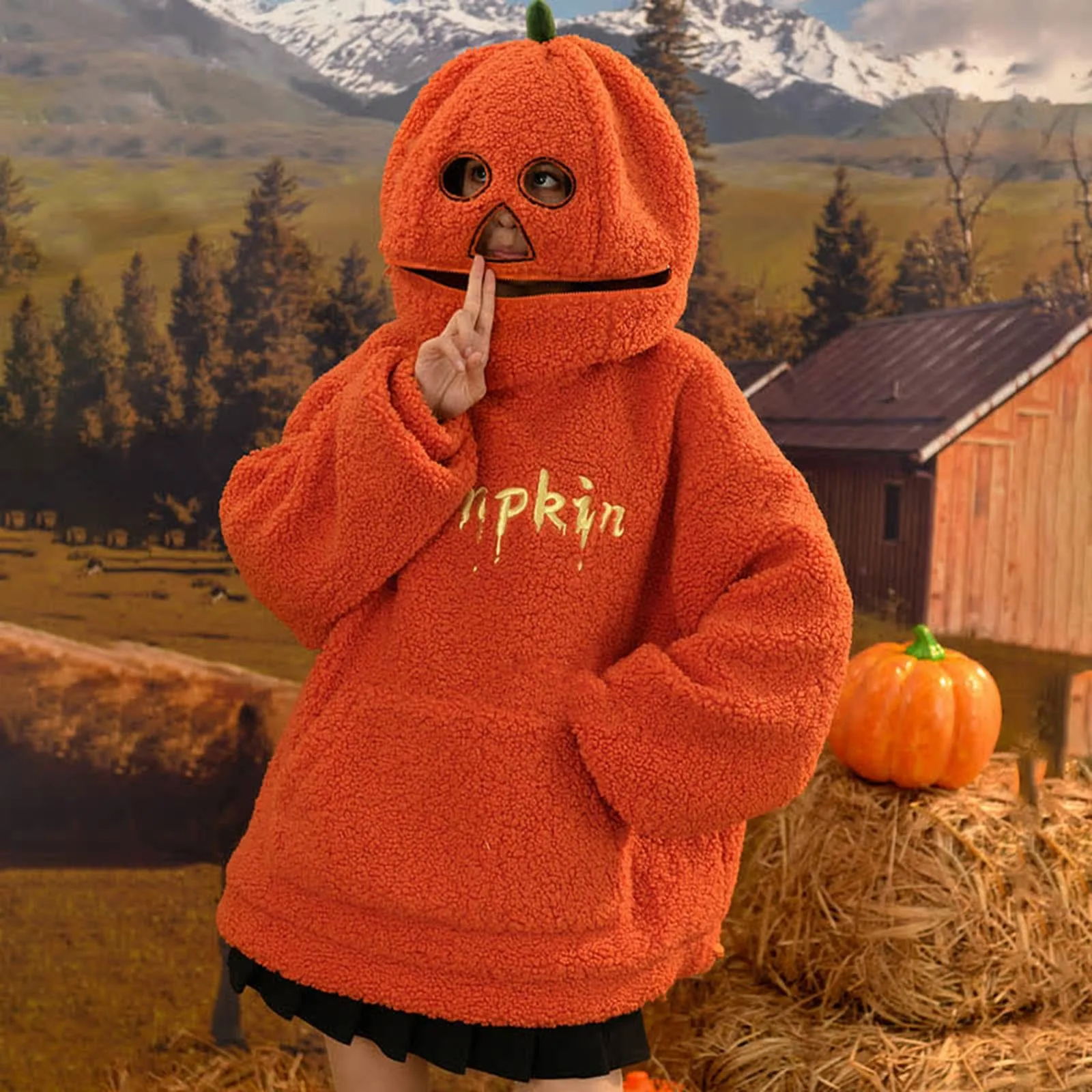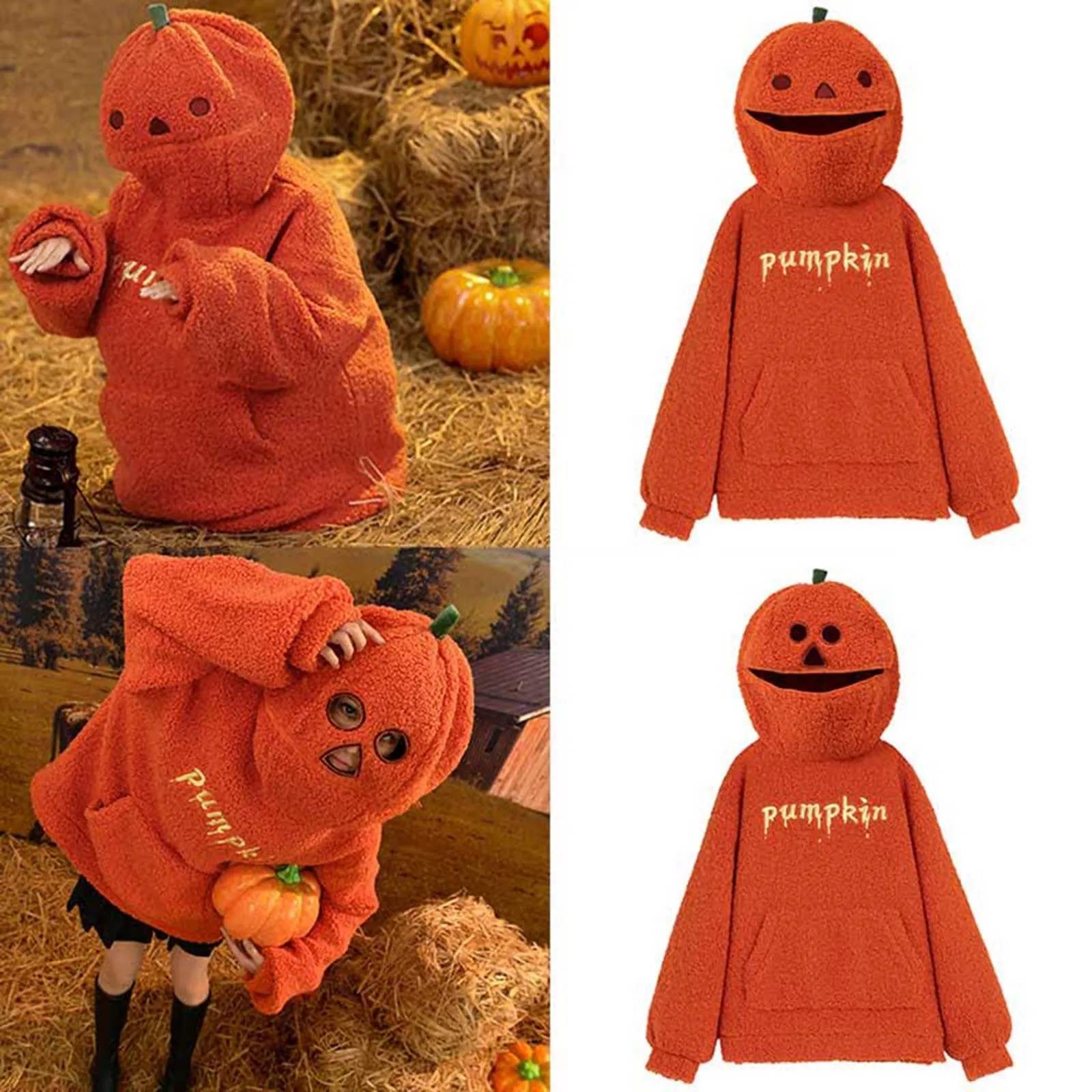 Y2k felpa con cappuccio oversize zucca divertente carino felpa con cappuccio abbigliamento agnello peluche maglione cappotto con cappuccio cartone animato autunno e inverno maglione sciolto