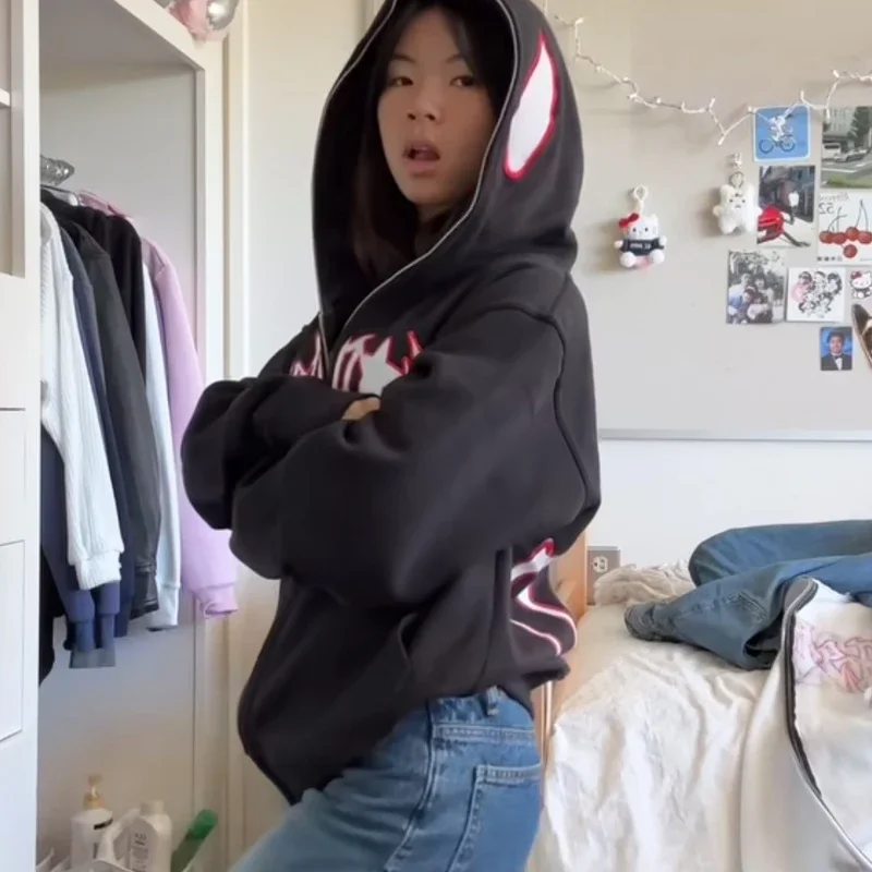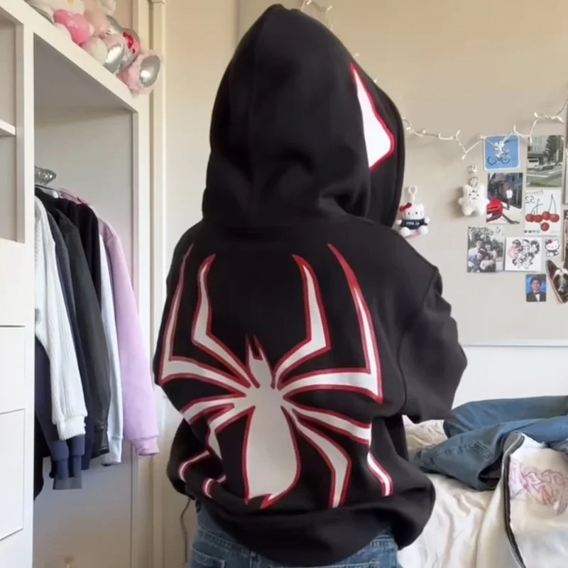 Recensisci per primo “Y2K nuove donne coreane camicia con cappuccio felpa con cappuccio con stampa ragno gotico felpa con zip abbigliamento streetwear vintage abiti hip-hop larghi” Annulla risposta