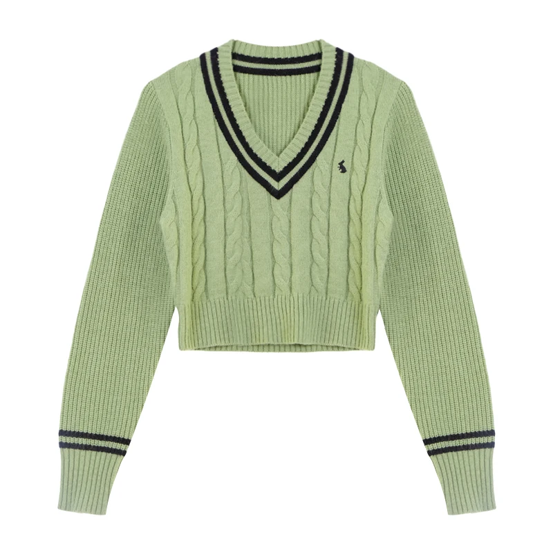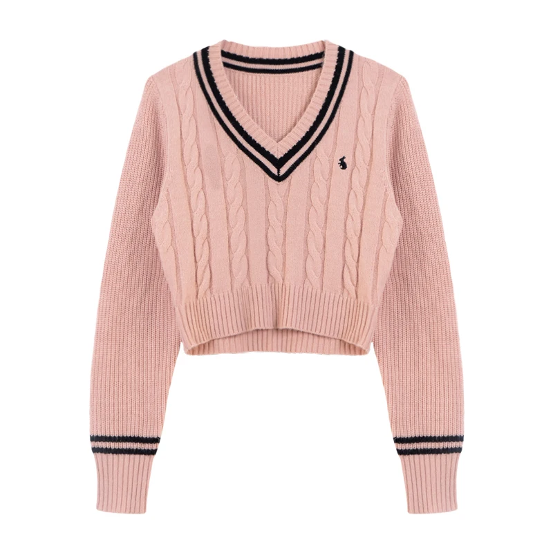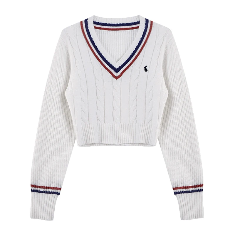YuooMuoo Maglioni moda coreana Donna Autunno Scollo a V Y2K Cartoon Ricamo Top in maglia Inverno Morbido Basic Pullover a maniche lunghe