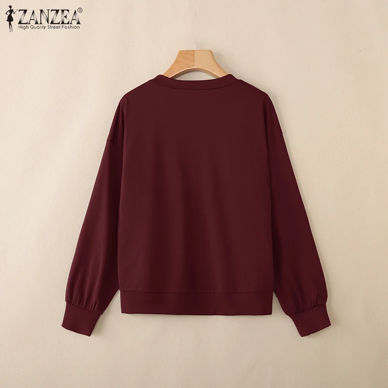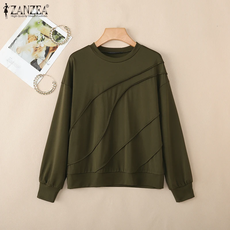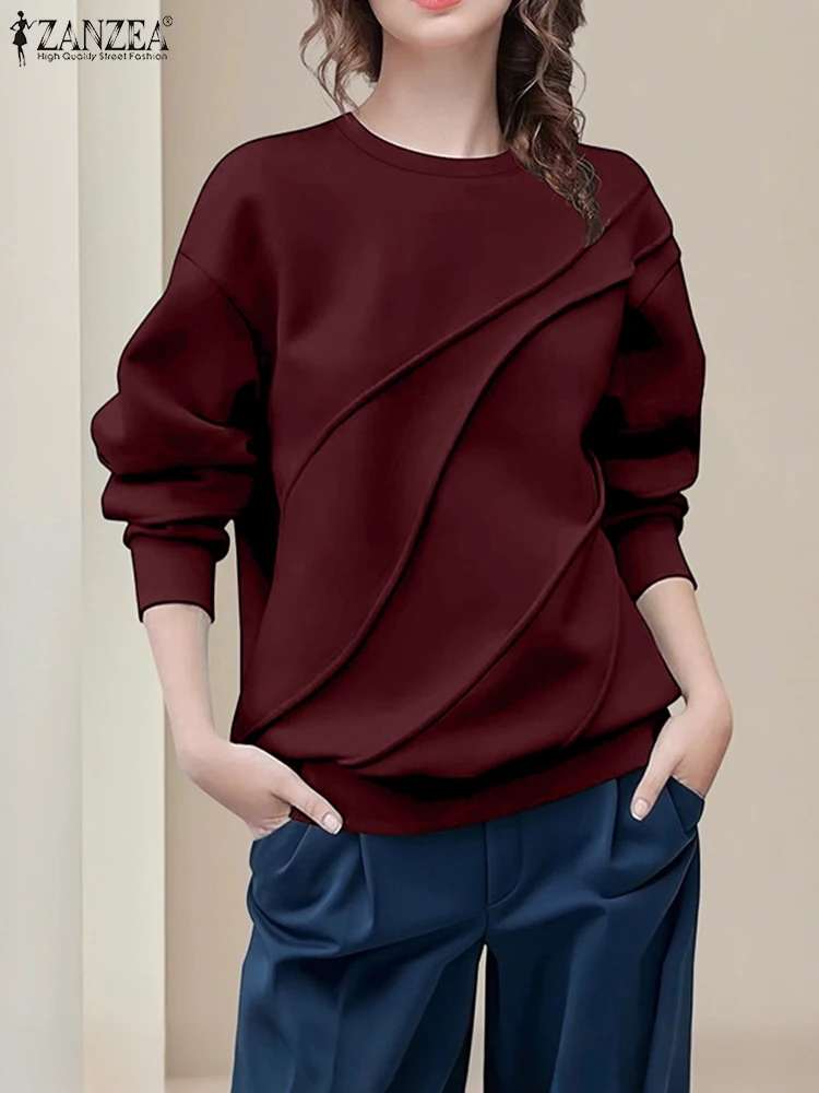 ZANZEA 2025 Felpe da donna Solido Manica lunga Casual Felpe allentate Moda O-Collo Autunno Pullover Capispalla a pieghe