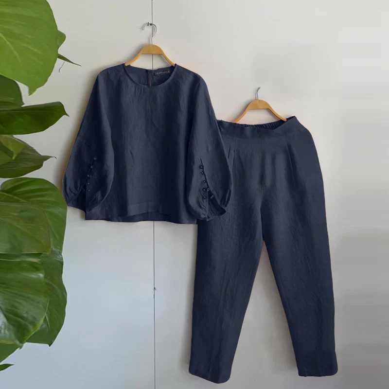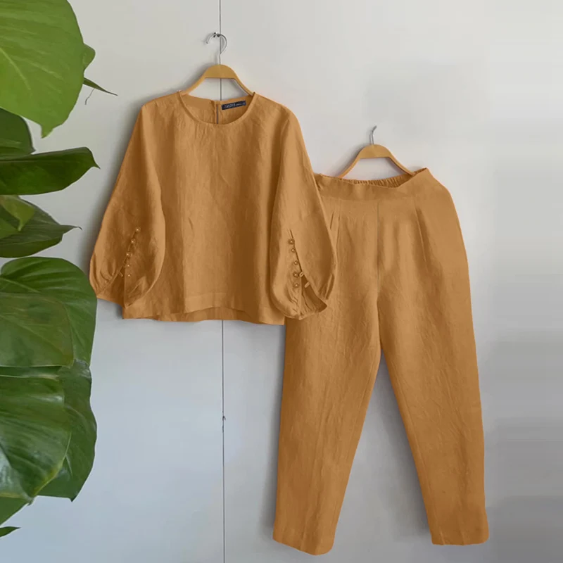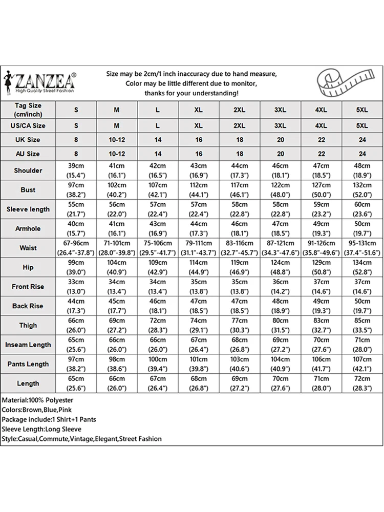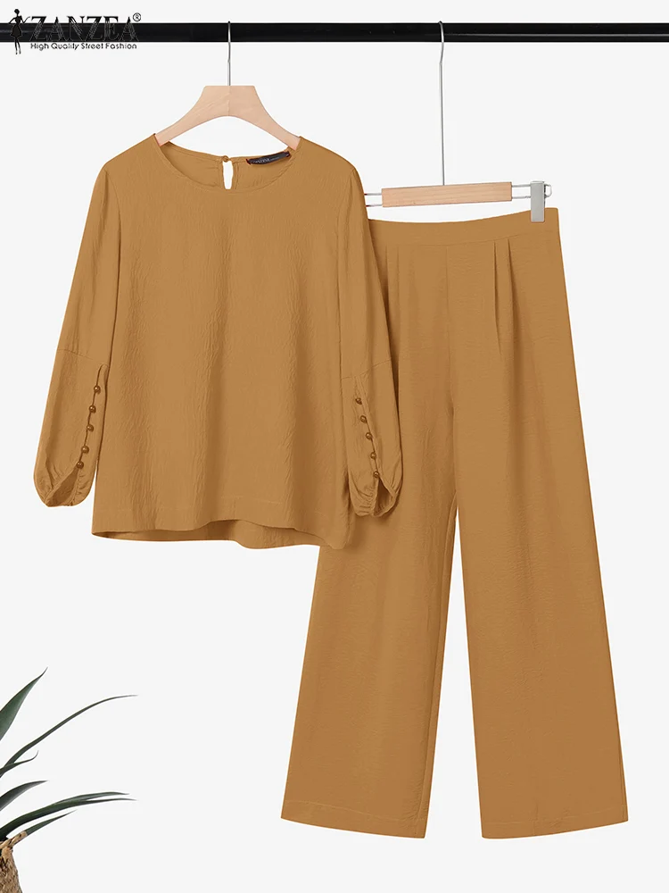 Recensisci per primo “ZANZEA Donna Due Pezzi Outfit 2025 Moda Top a Manica Lunga Autunno Casual Solido A Vita Alta Pantaloni Lunghi Set 2PCS Abiti Tuta” Annulla risposta