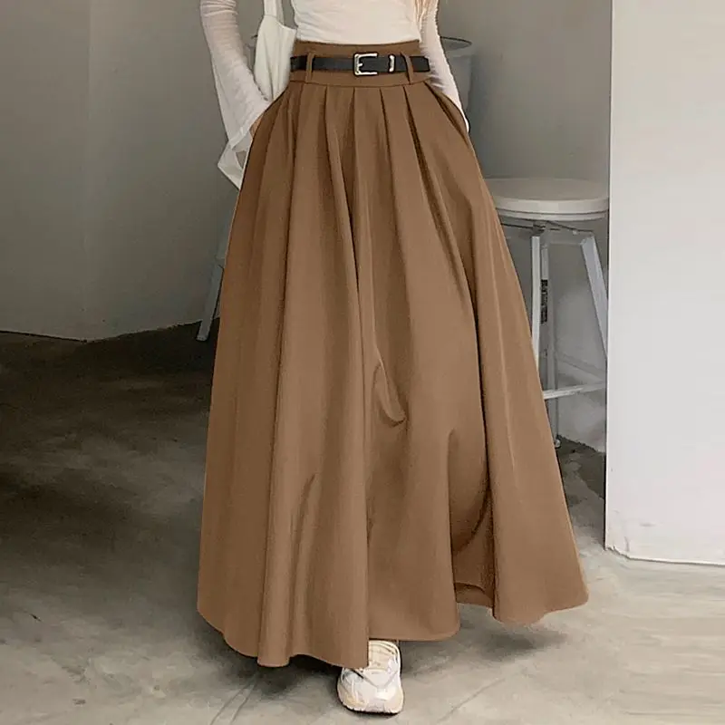 ZANZEA donna vita alta Jupe2024 primavera Vintage ufficio Falda moda coreana gonna a pieghe altalena vacanza allentata Maxi gonna solida