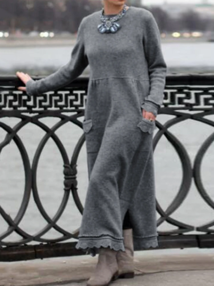 ZANZEA inverno autunno felpa vestito donna pizzo Crochet Pullover Vestidos solido O collo manica lunga in pile prendisole Robe felpe con cappuccio