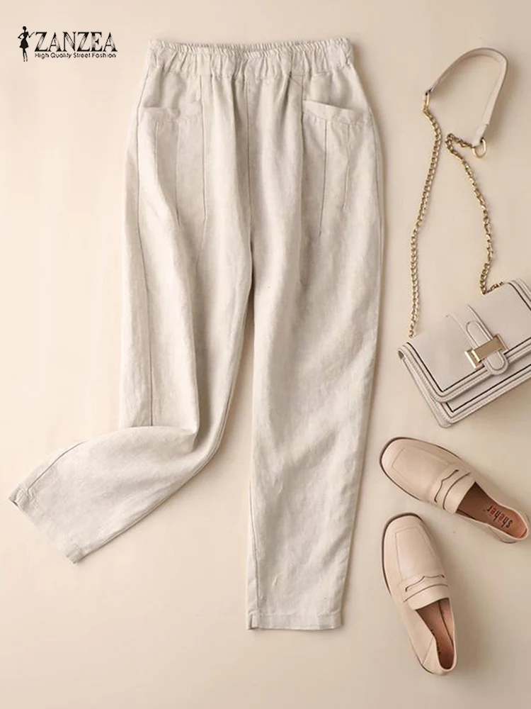 ZANZEA pantaloni estivi donna pantaloni Vintage in cotone elastico in vita solido Harem Pant Casual Pantalon allentato Oversize rapa Palazzo