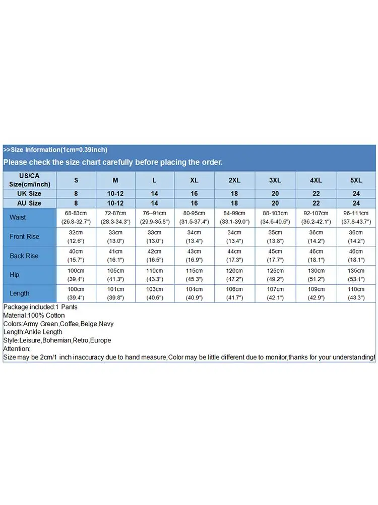 Questi pantaloni sono un prodotto di ottima qualità. Vorrei anche sottolineare che i prodotti Zanzea sono sempre così e che la loro tabella delle taglie (cm e pollici) è corretta. Sono soddisfatto e consiglio questo prodotto ad altri.