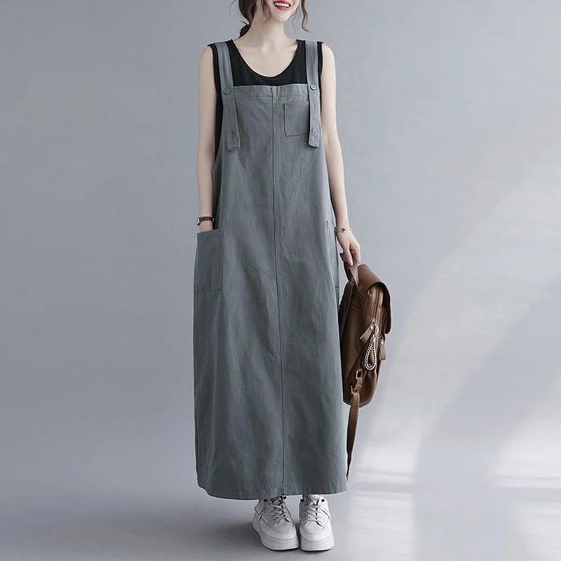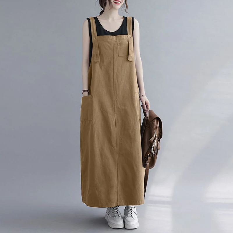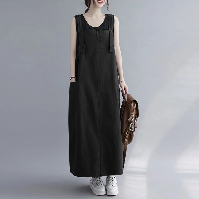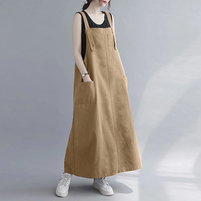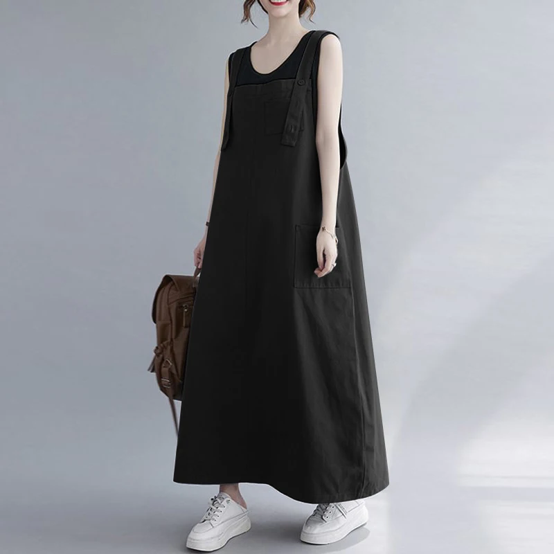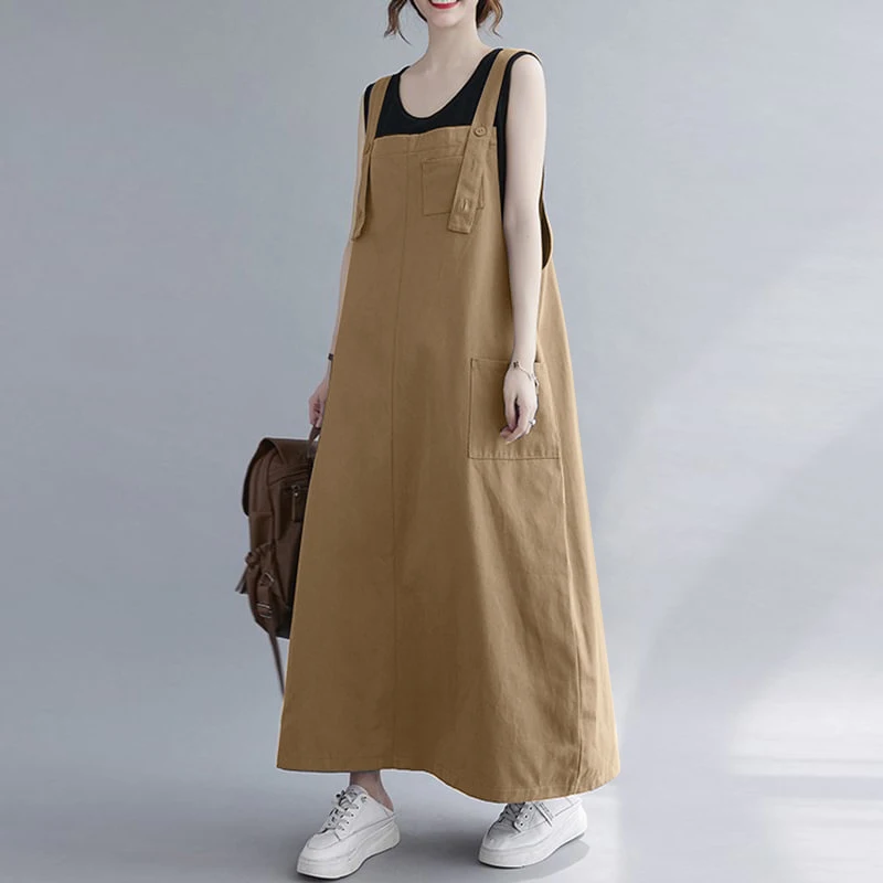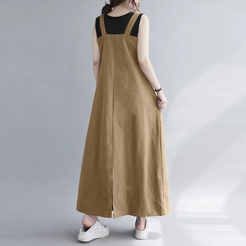 2 recensioni per ZANZEA Spalline Regolabili Abiti 2023 Donne di Estate Senza Maniche Maxi Vestito di Moda Abbigliamento Da Lavoro Tasche Abiti Streetwear