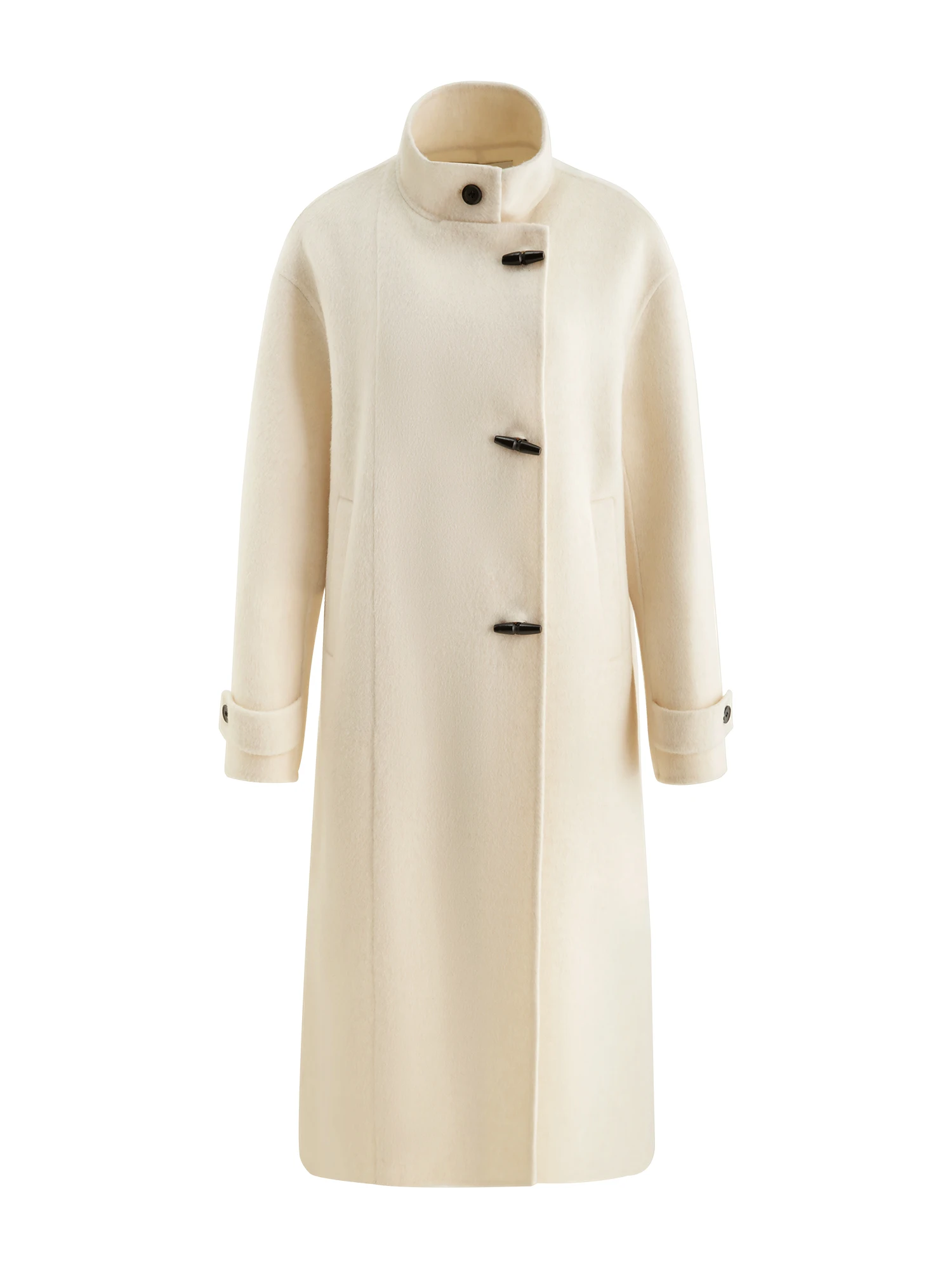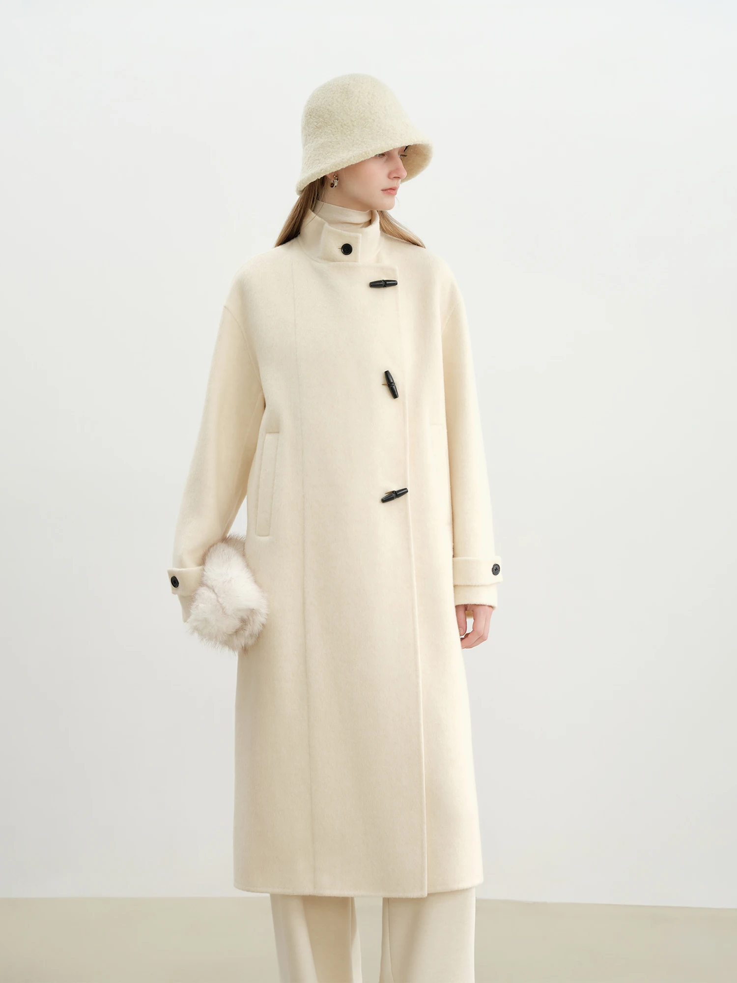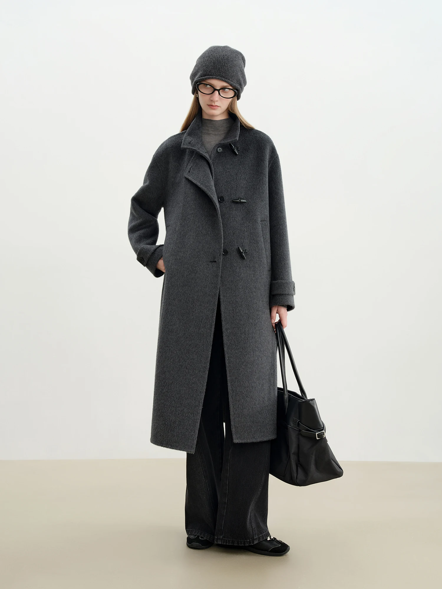 ZIQIAO 2025 Nuovo Arrivo Chic Cappotto Lungo Bottoni in Corno Elegante Cappotto in Tweed di Lana Smalto di Seta Perfetto per l’Autunno Inverno Misto di Lana
