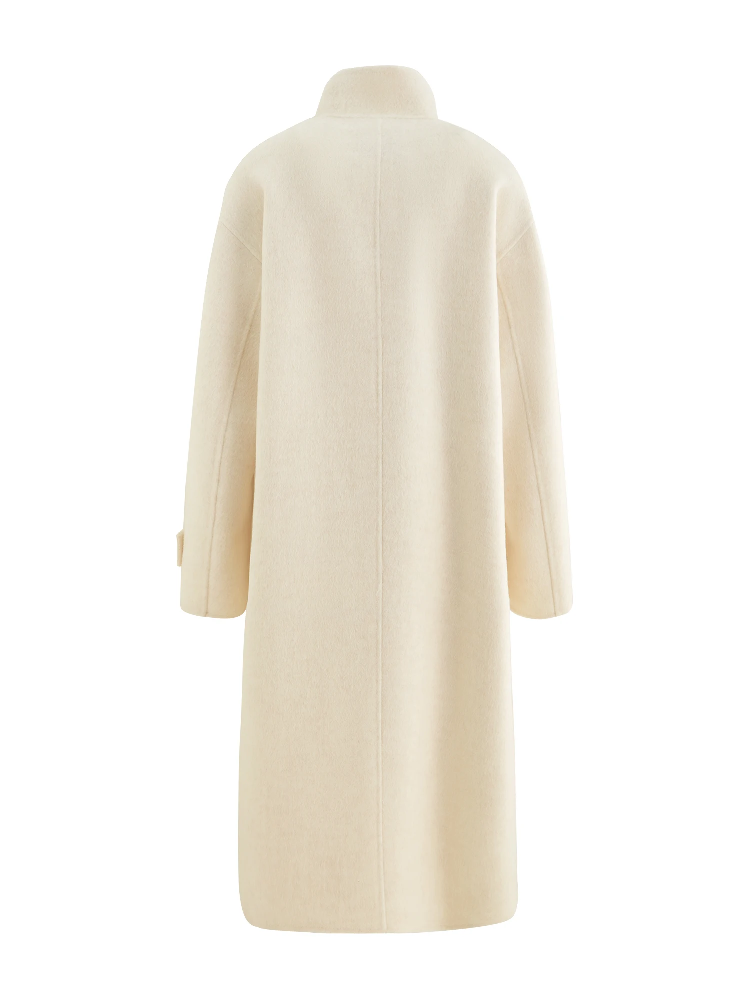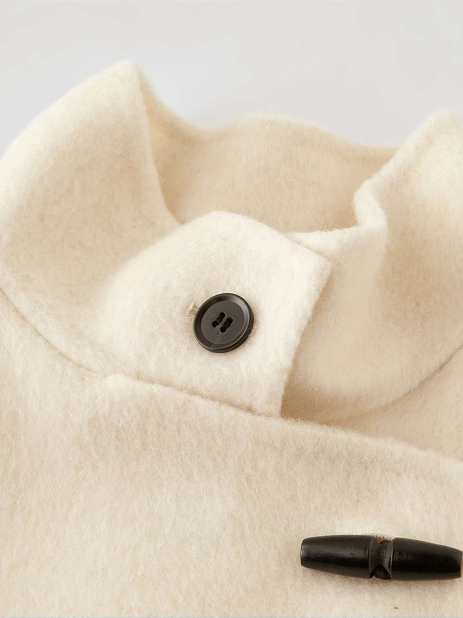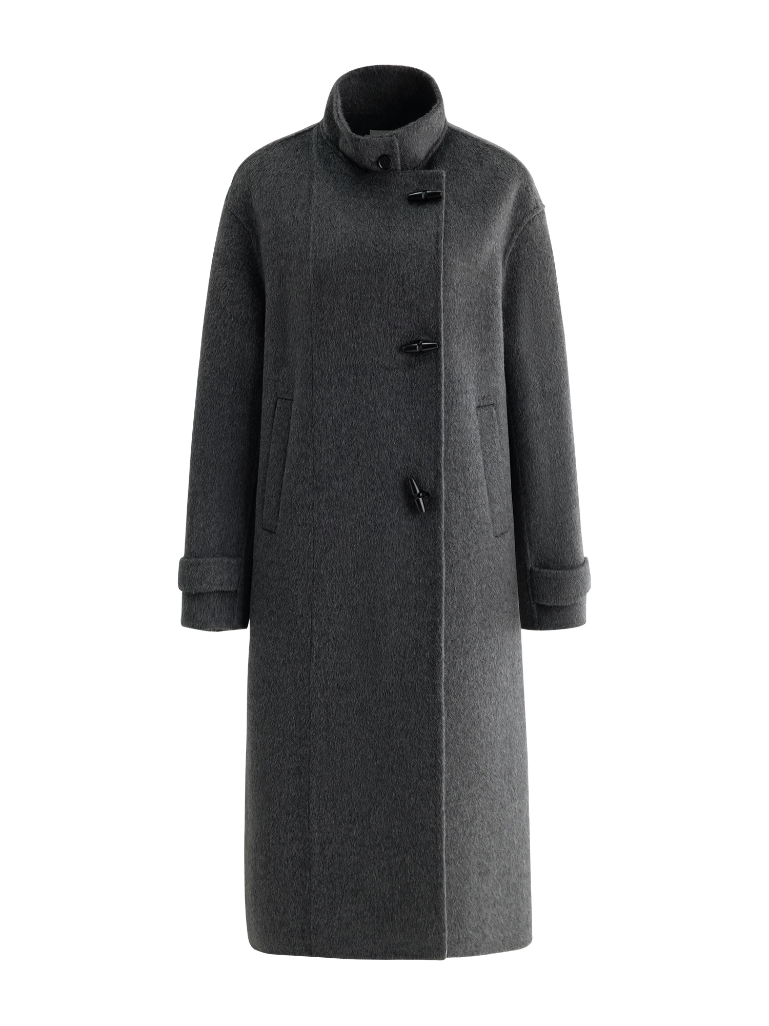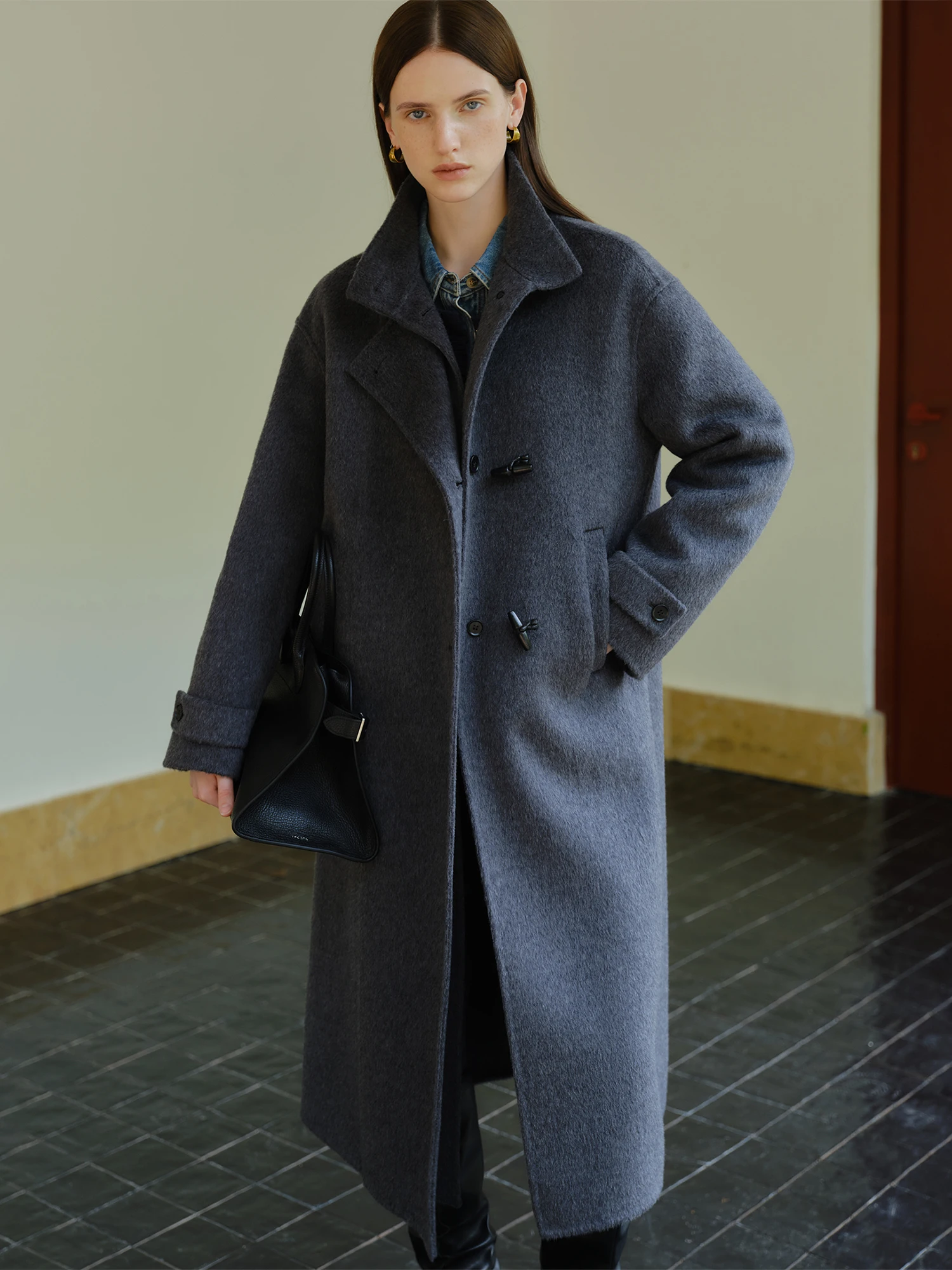 ZIQIAO 2025 Nuovo Arrivo Chic Cappotto Lungo Bottoni in Corno Elegante Cappotto in Tweed di Lana Smalto di Seta Perfetto per l’Autunno Inverno Misto di Lana