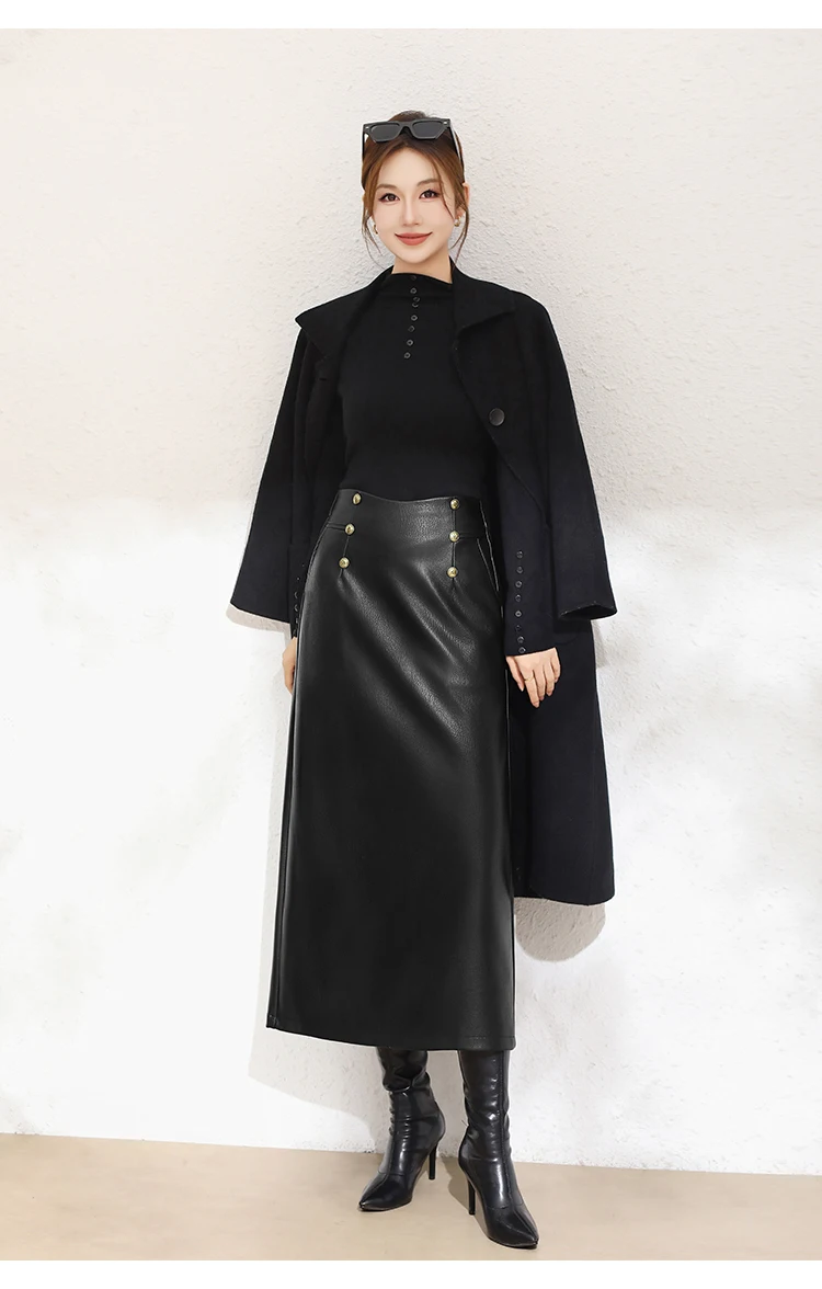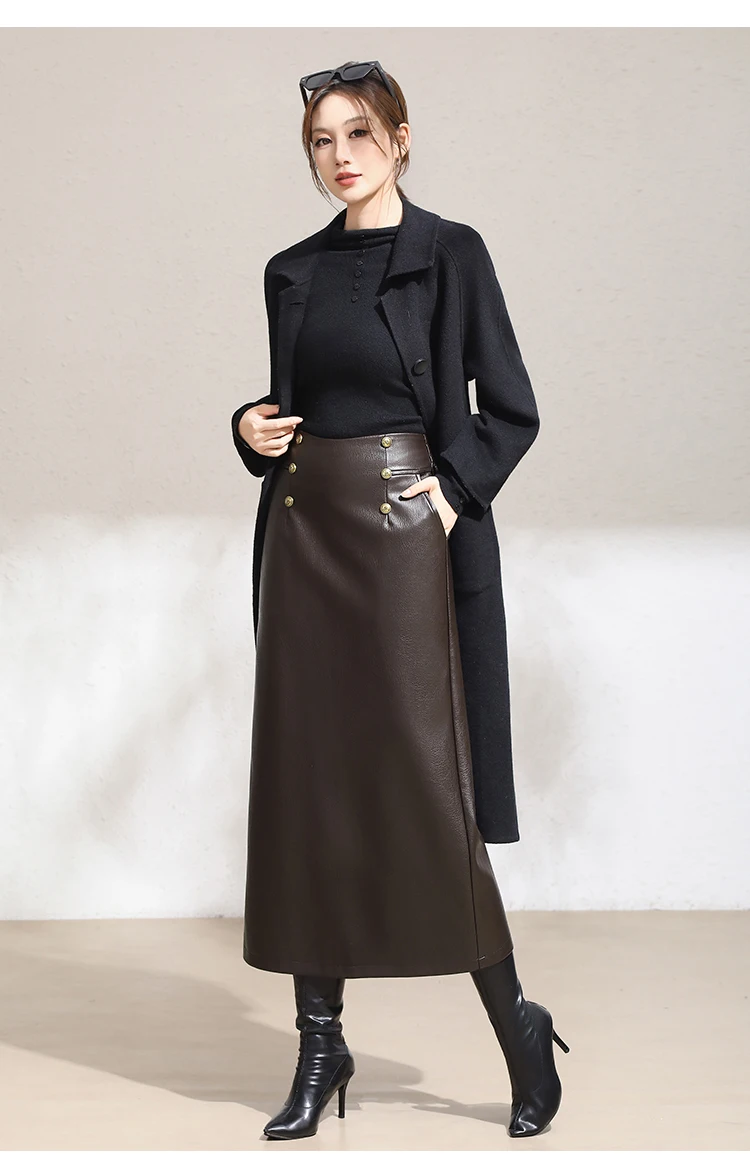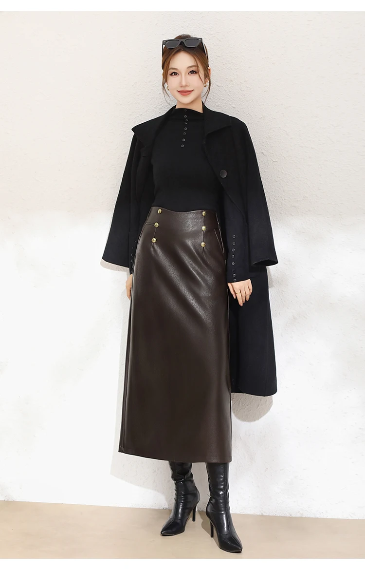 Recensisci per primo “ZUZK Chic nuove gonne aderenti in pelle PU gonna dritta donna autunno inverno elastico a vita alta semplice versatile gonna lunga in PU” Annulla risposta