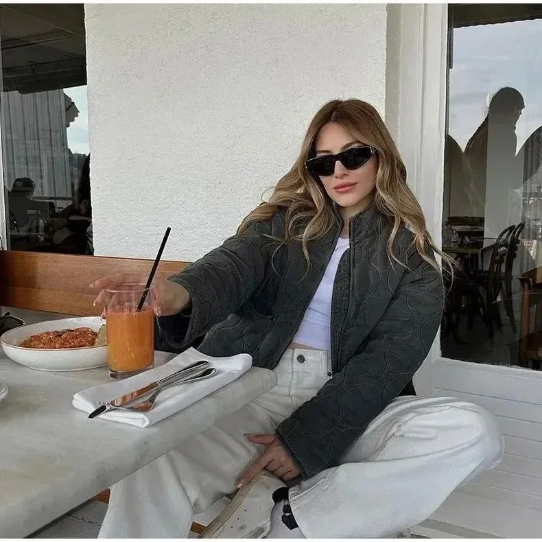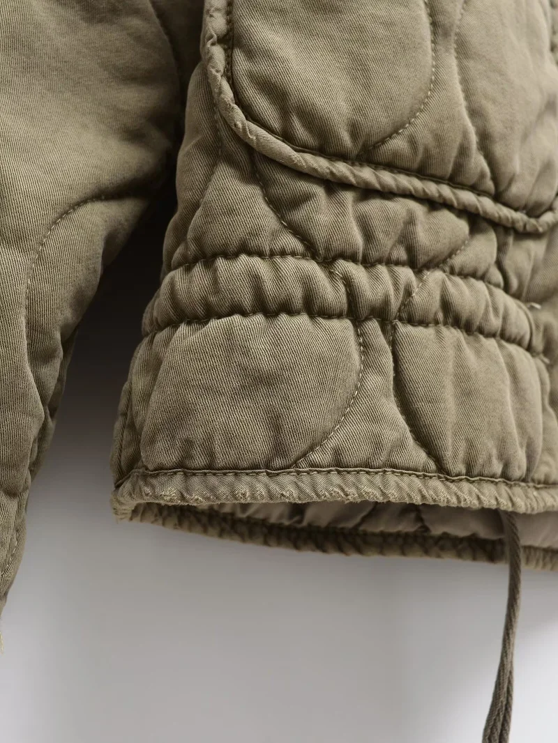ZW Giacca in cotone da donna 2025 Nuovo arrivo Vintage Lenzing Rayon Collo alto Tasca grande Cappotto trapuntato decorativo per le donne